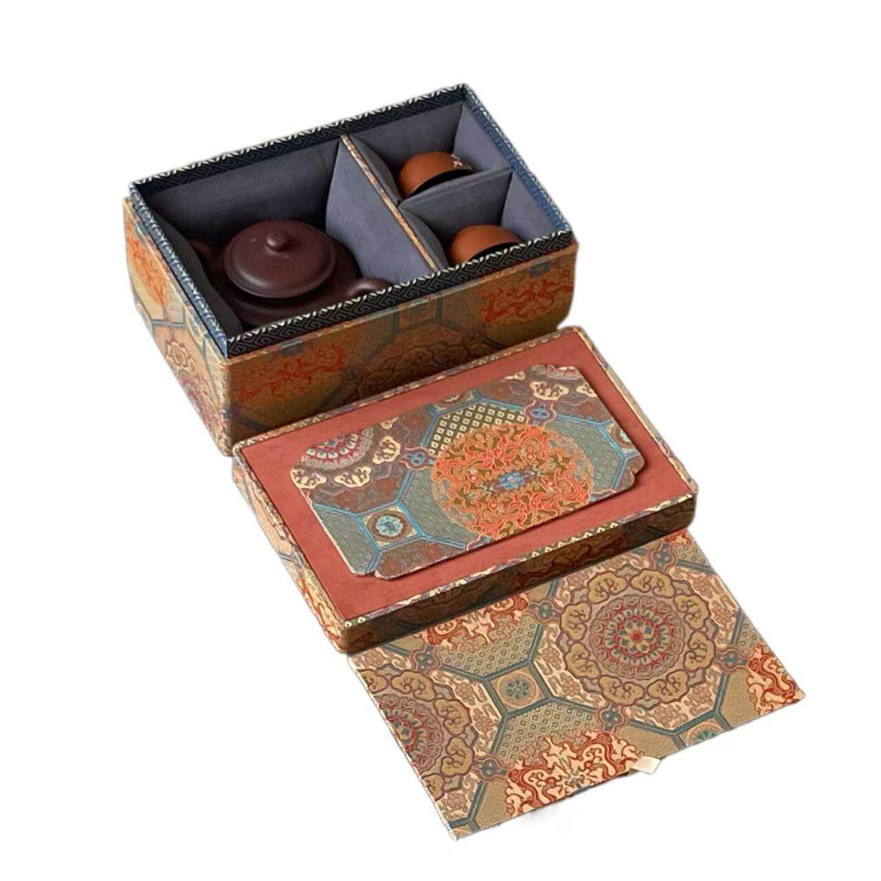 📚 新款中式茶具包装一壶两杯一壶四杯锦盒紫砂壶银铁壶长方形礼品盒