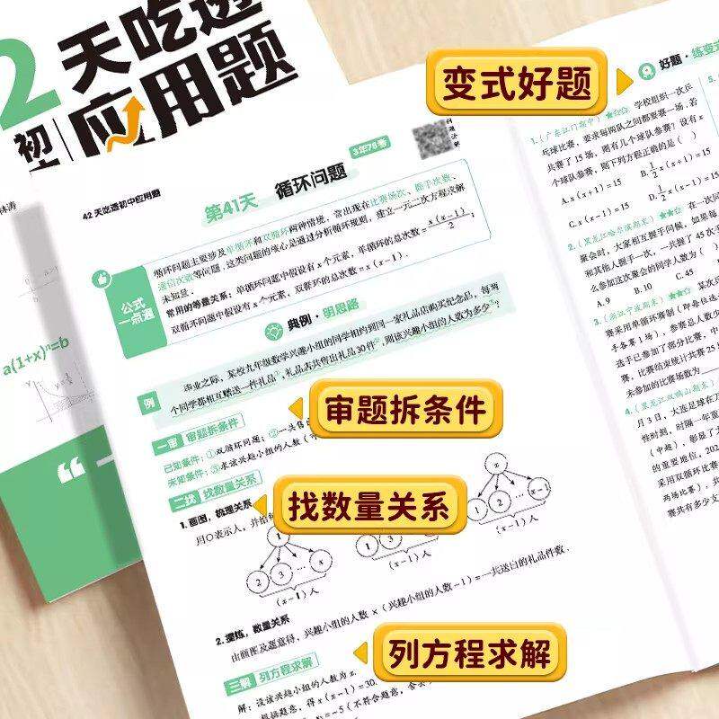 📚 2026版42天吃透初中应用题初中一二三年级数学强化专项训练几何模型解题技巧中考七八九年级必刷题初中知识点归纳总结全套每日一练