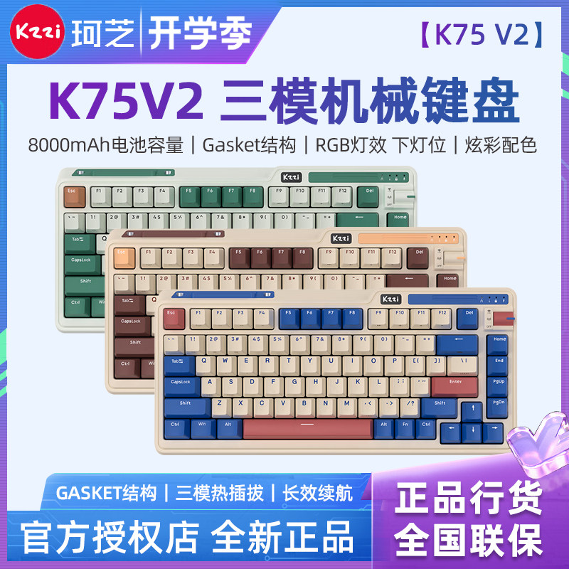 📚 Kzzi珂芝K75V2性能版无线三模客制化机械键盘gasket结构金粉快银