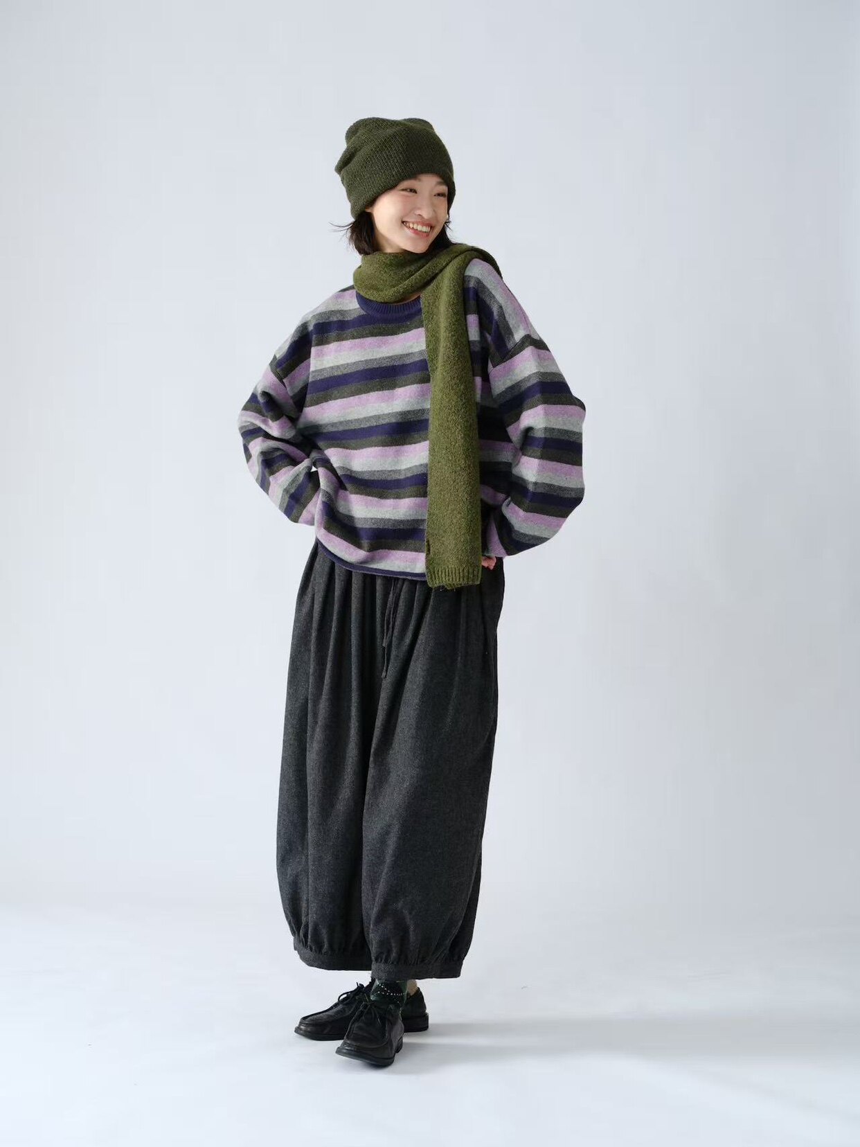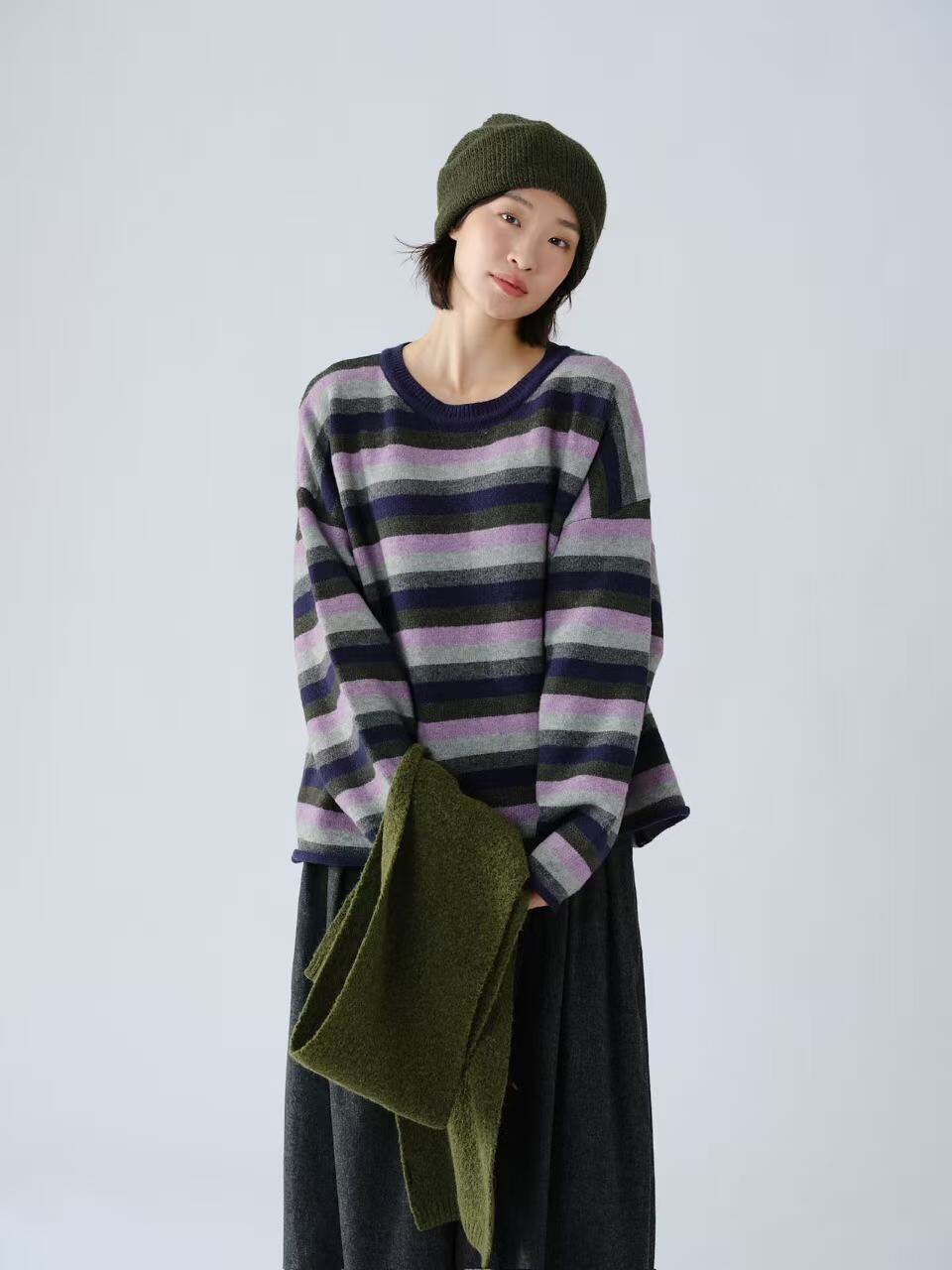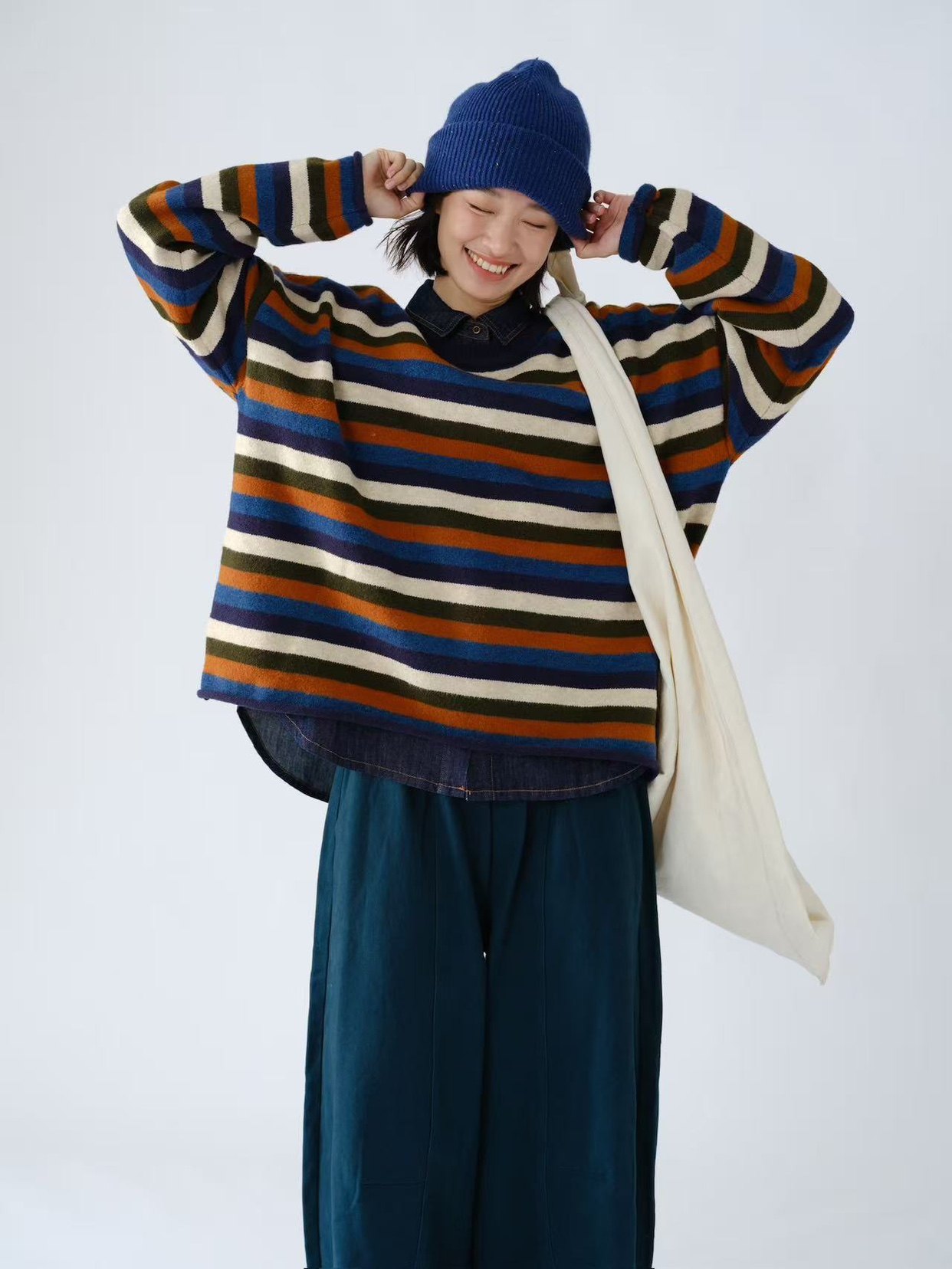 📚 女装正品2025秋冬新毛衣35699休闲文艺复古小众宽松条纹针织衫女