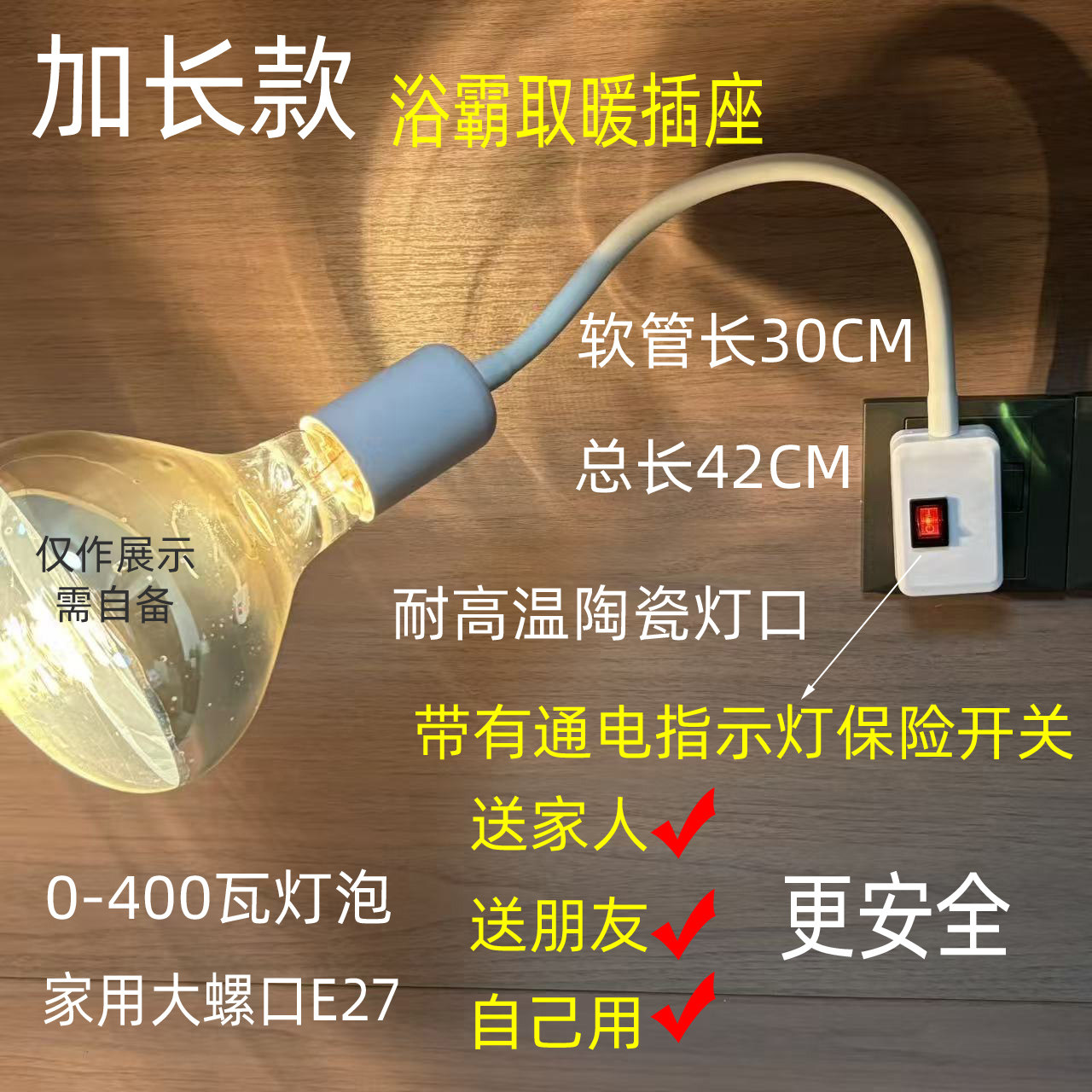 📚 免开孔壁挂式直插取暖浴霸灯275瓦 三插头陶瓷灯座大功率浴室暖灯