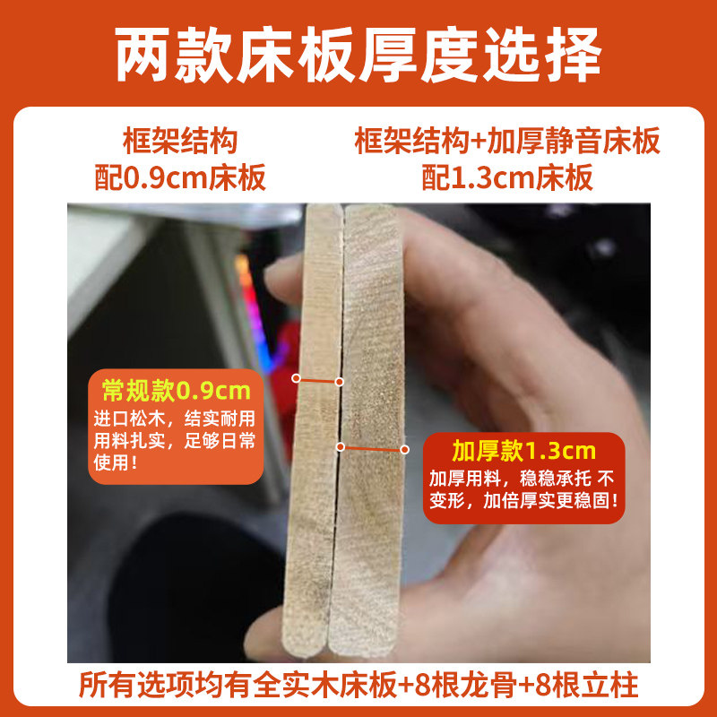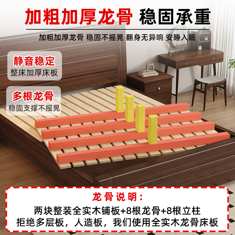 📚 全实木床1米5双人床1米8储物家用经济型简约加厚1.2m出租房单人床