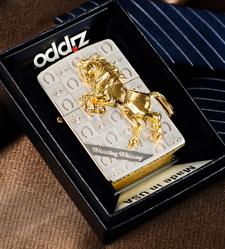📚 官方ZIPPO防风打火机正版zipoo马年纪念版金色骏马高颜值创意zppo