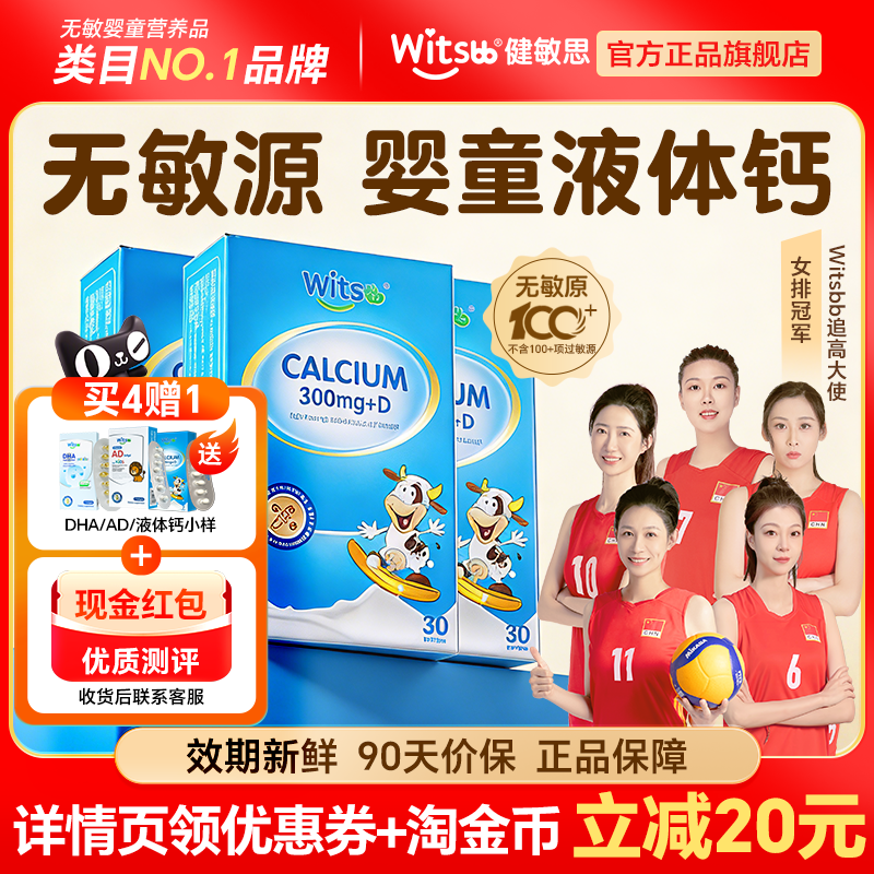 📚 witsbb健敏思液体钙婴幼儿童钙镁锌小蓝盒d3柠檬酸钙k2补钙正品