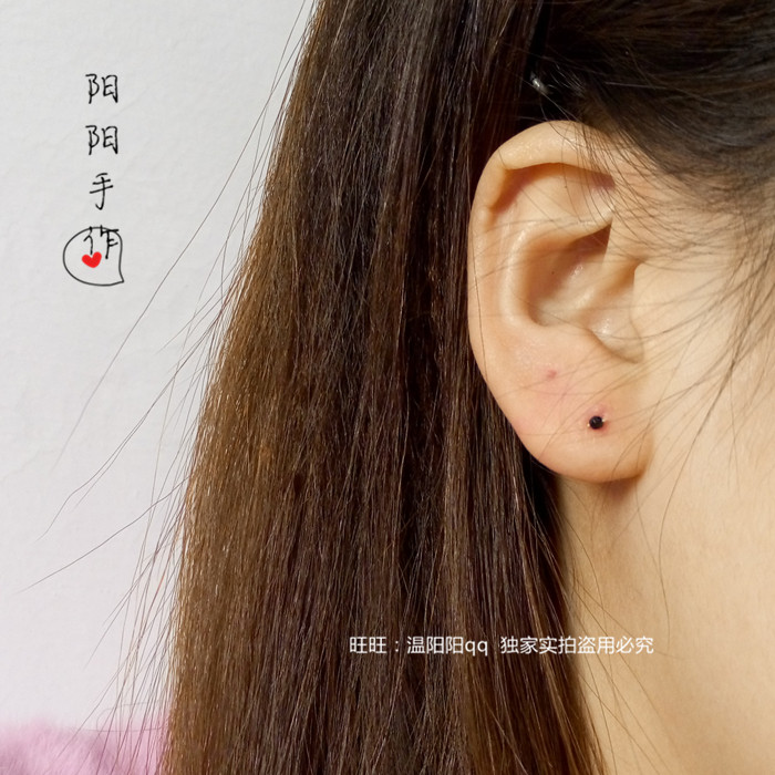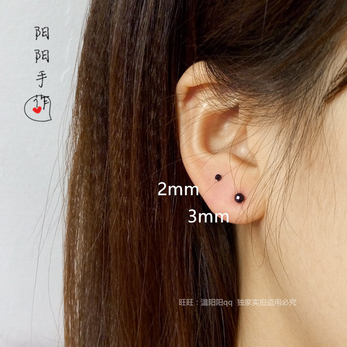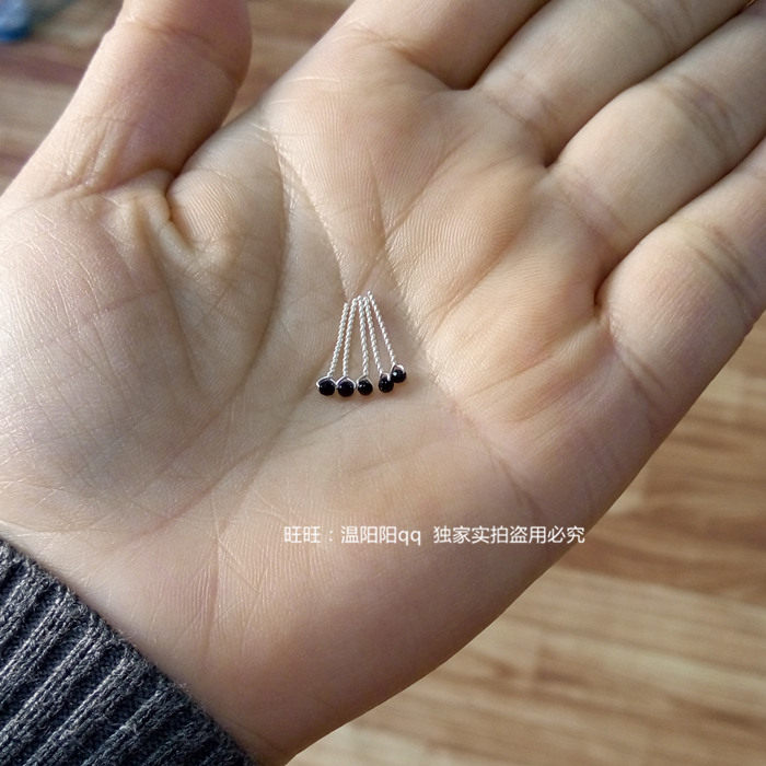📚 手工999足银纯银麻花耳针极小2mm黑玛瑙切面闪珠黑色迷你耳骨耳钉