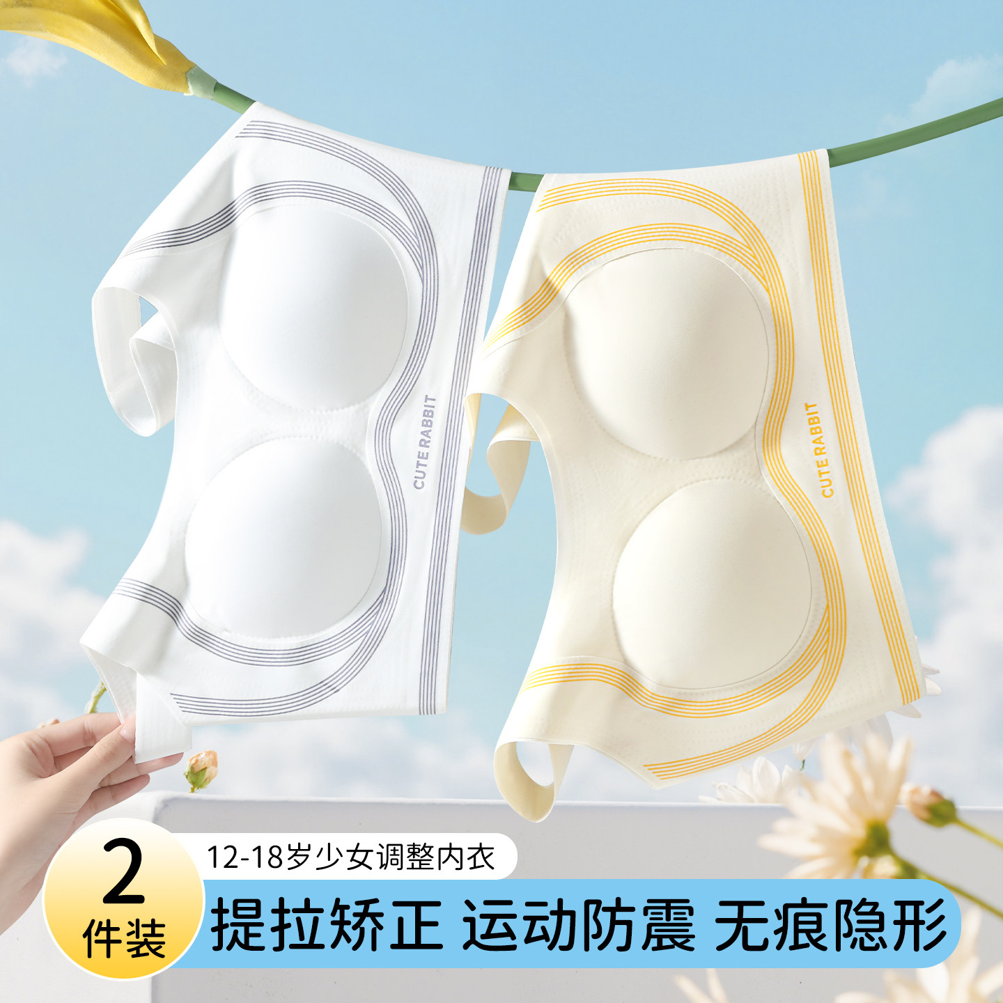 📚 发育期儿童背心初中生少女生内衣提拉矫正防震运动无痕隐形固定杯