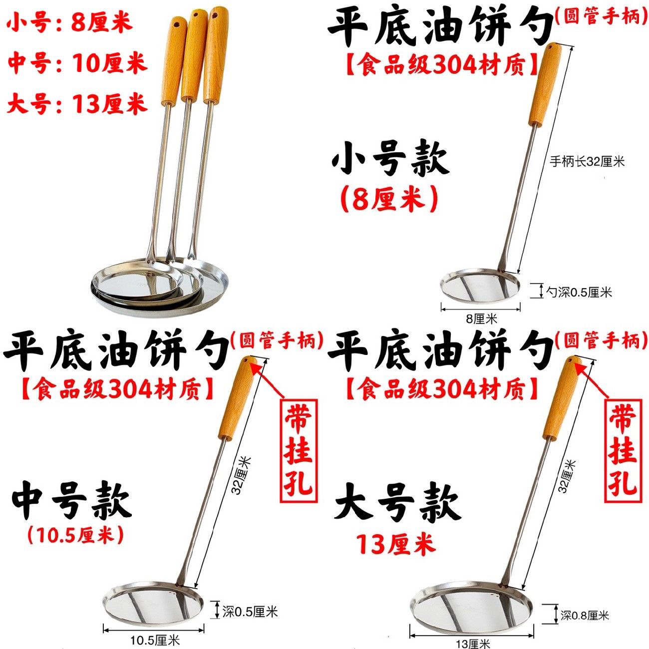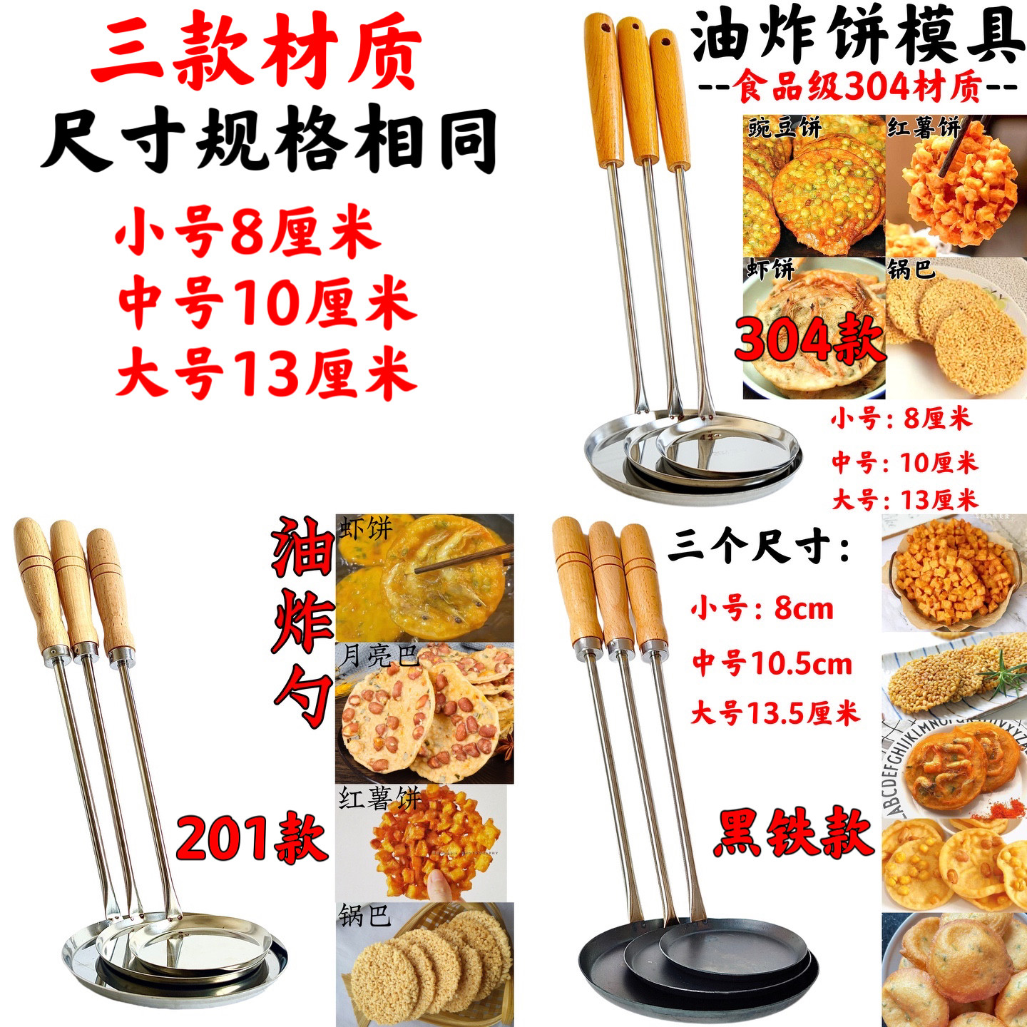 📚 不锈钢锅巴模具 油饼模子 铜勺饼油炸虾饼勺子海蛎饼土豆饼食品级