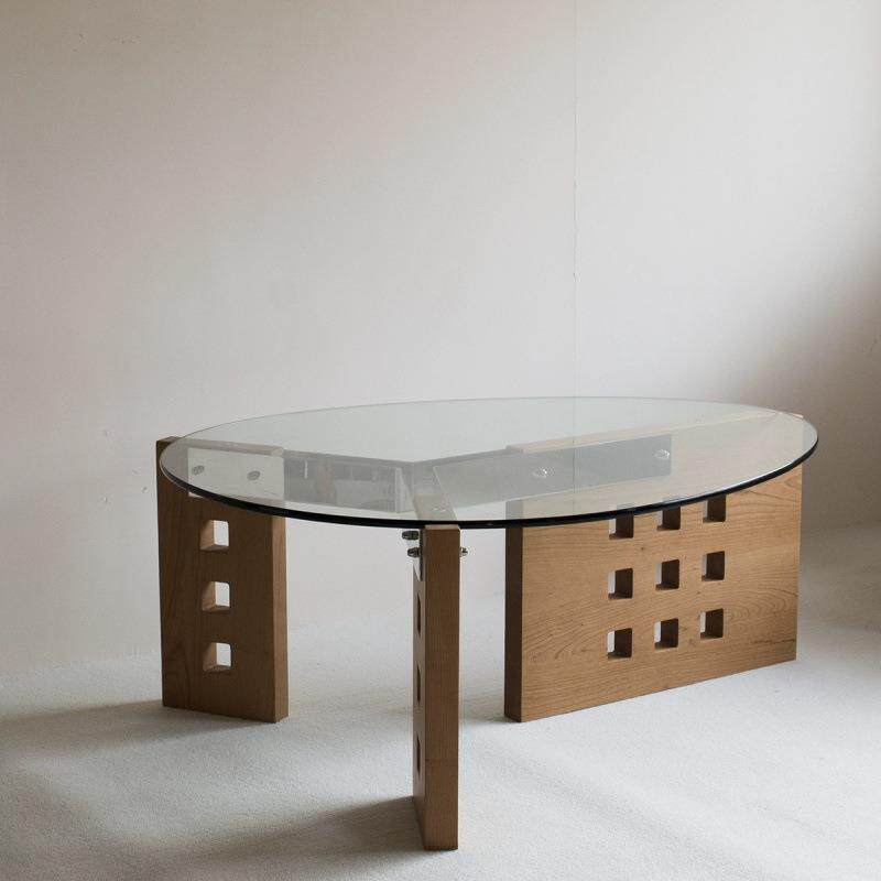 📚 简约现代椭圆设计洞洞茶几客厅洽谈玻璃茶桌边几置物架可移动桌子