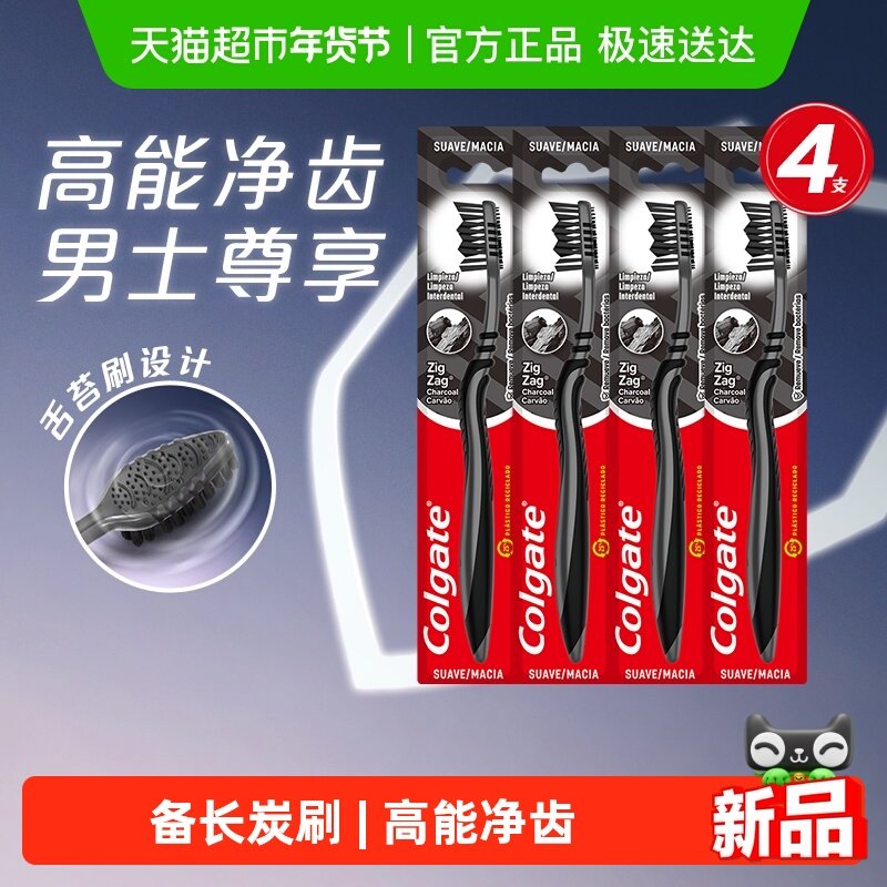 📚 高露洁适齿炭男士含炭去渍护龈深洁抑菌成人牙刷舌苔刷牙缝刷4支