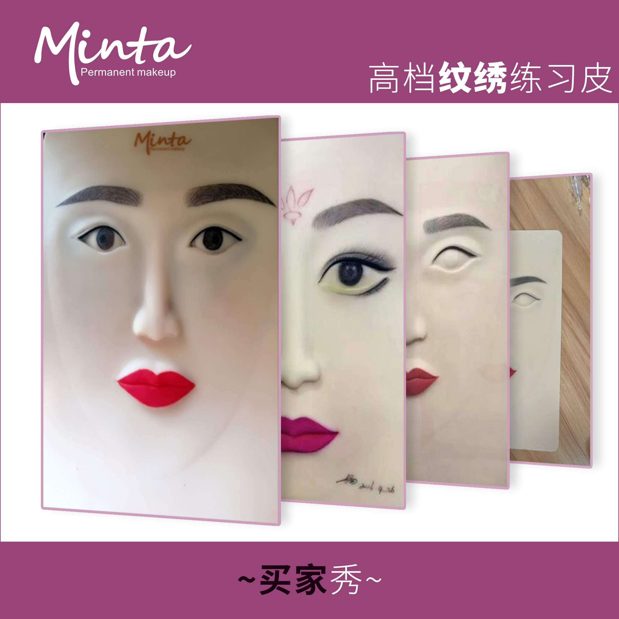 📚 美意达 纹绣硅胶仿真练习皮全脸皮子 唇眉眼平面练习皮小白皮头模