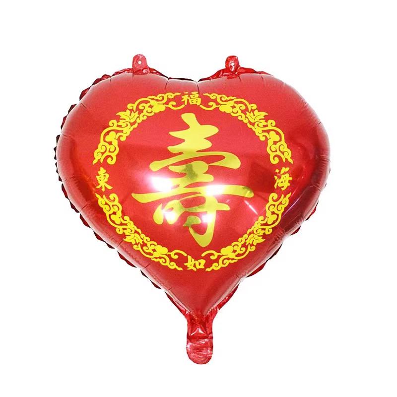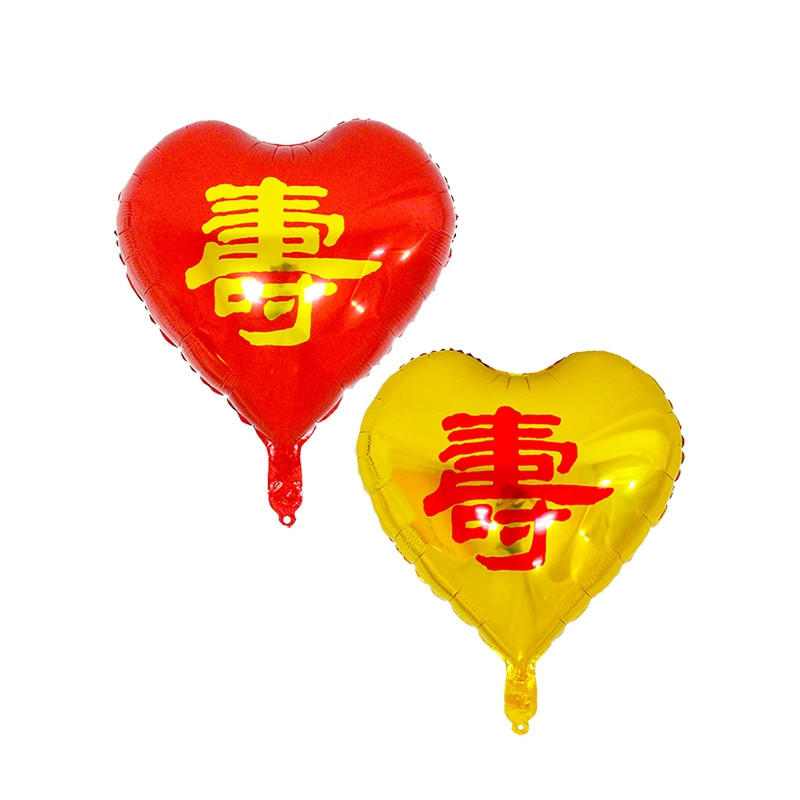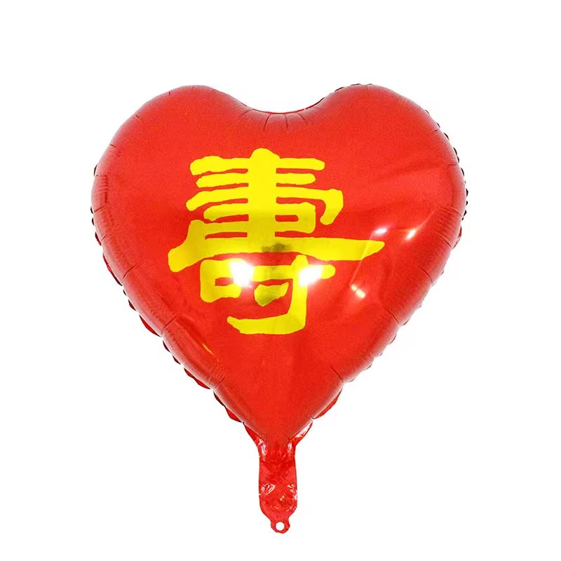 📚 18寸爱心铝膜气球心形祝贺寿字喜字双喜做寿寿宴生日酒店布置装饰