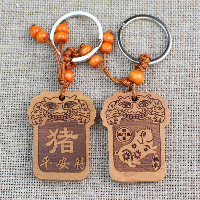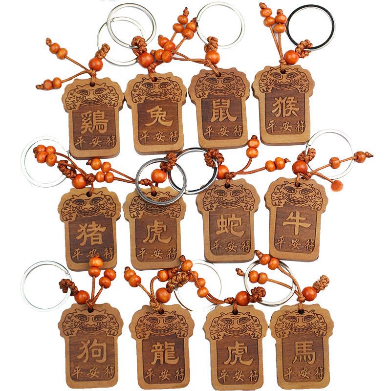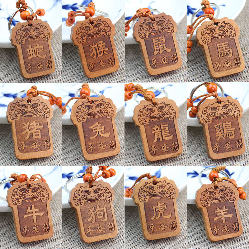 📚 桃木十二生肖钥匙扣挂件平安符鼠牛虎兔龙蛇马羊猴鸡狗猪吉祥好物