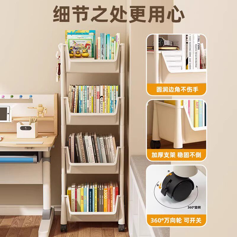📚 桌下书架家用落地置物架客厅零食玩具收纳架儿童书柜可移动小推车