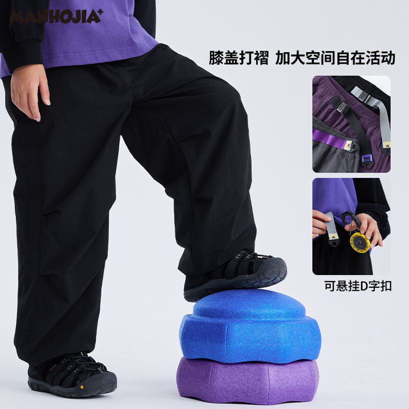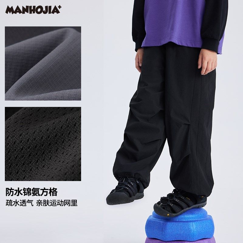 📚 漫画家童装24秋新款防水锦氨方格伞兵工装裤女童男童大童裤子儿童