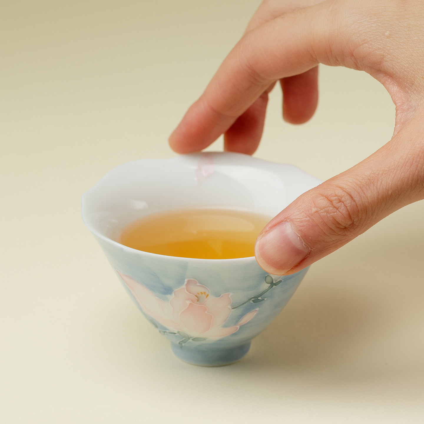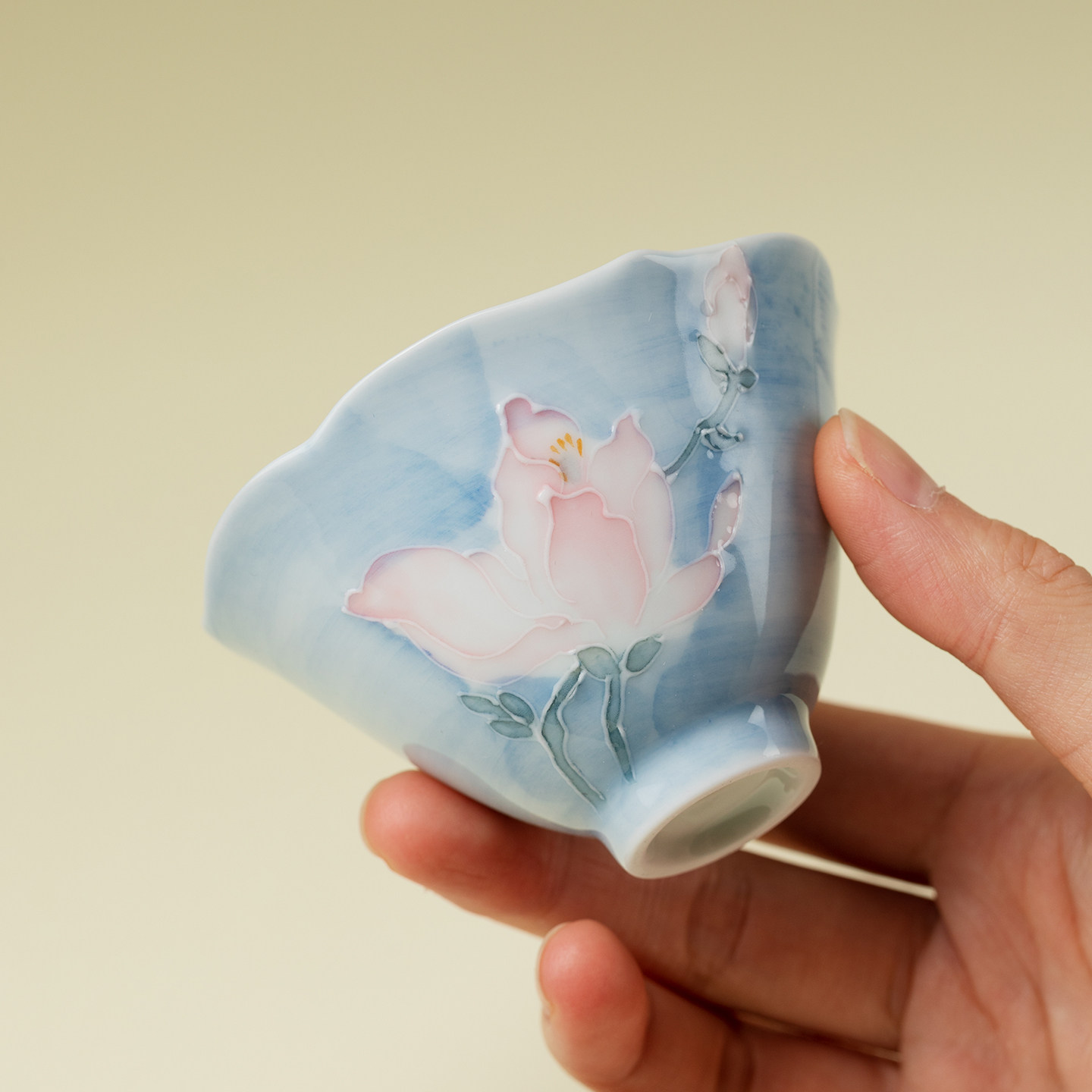 📚 里作纯手绘雾漫玉兰芙瓣花茶杯陶瓷花口主人杯高足品茗杯单杯茶具