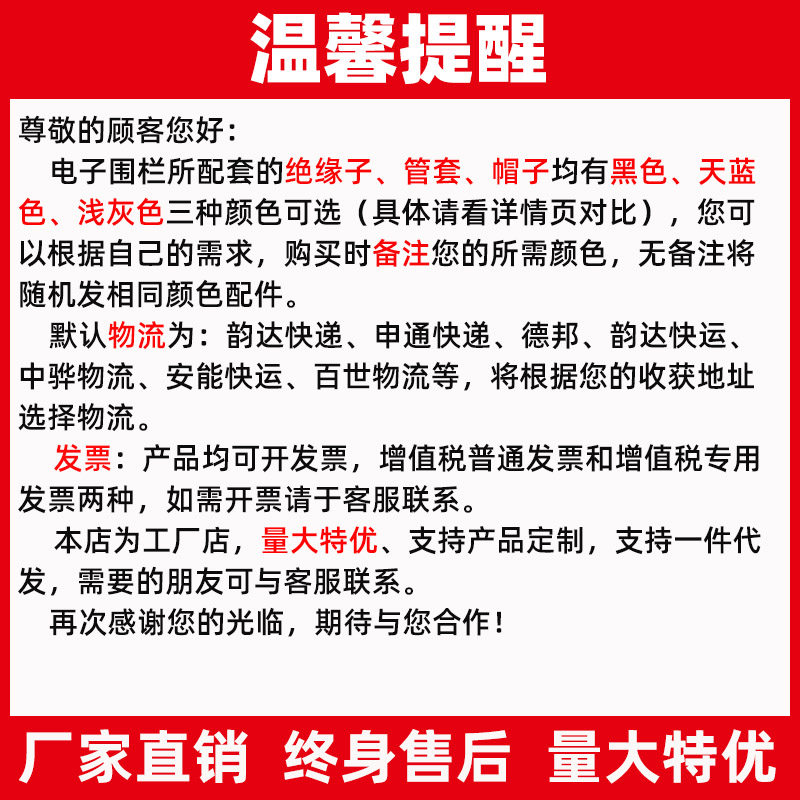 📚 电子围栏配件脉冲绝缘子合金线线连接器紧线防水警示牌避雷器配件