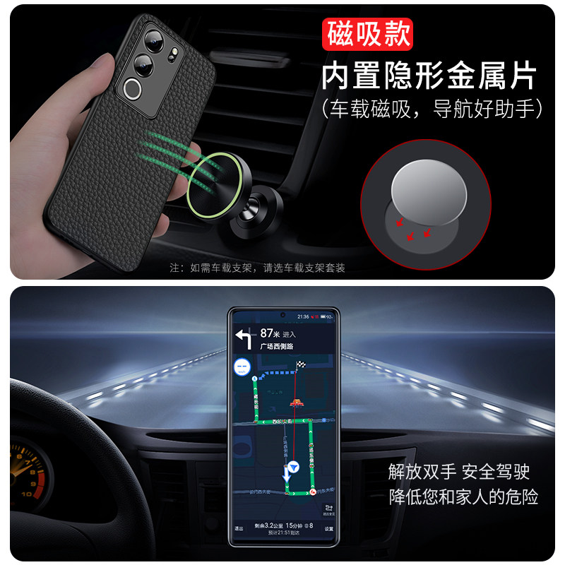 📚 适用vivos17手机壳s16pro荔枝纹s15e新款s12男士磁吸保护套s7男vovos17皮vovis16外壳vivis15后壳vos12