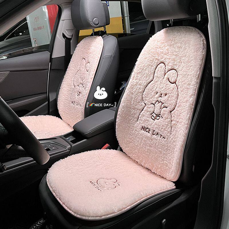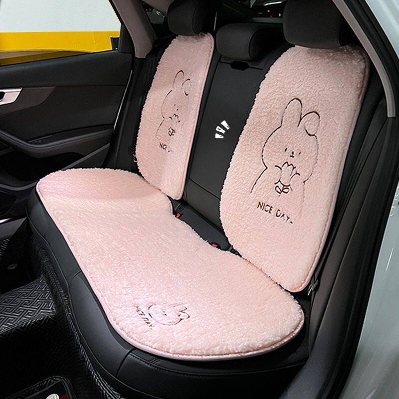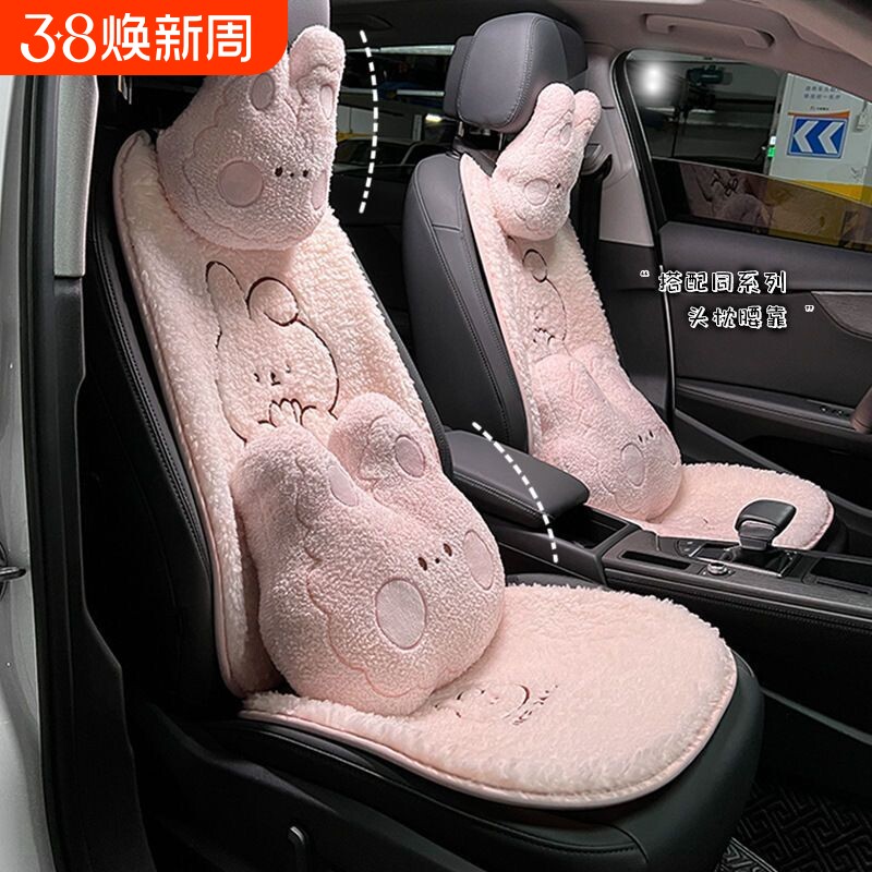📚 汽车坐垫可爱小兔冬季毛绒保暖舒适车载腰靠护颈枕头卡通背垫头枕