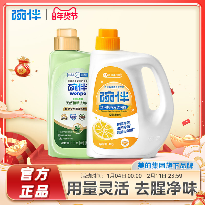 📚 碗伴美的洗碗机指定洗碗机专用柠檬A类洗碗粉洗碗粉套装 2瓶装