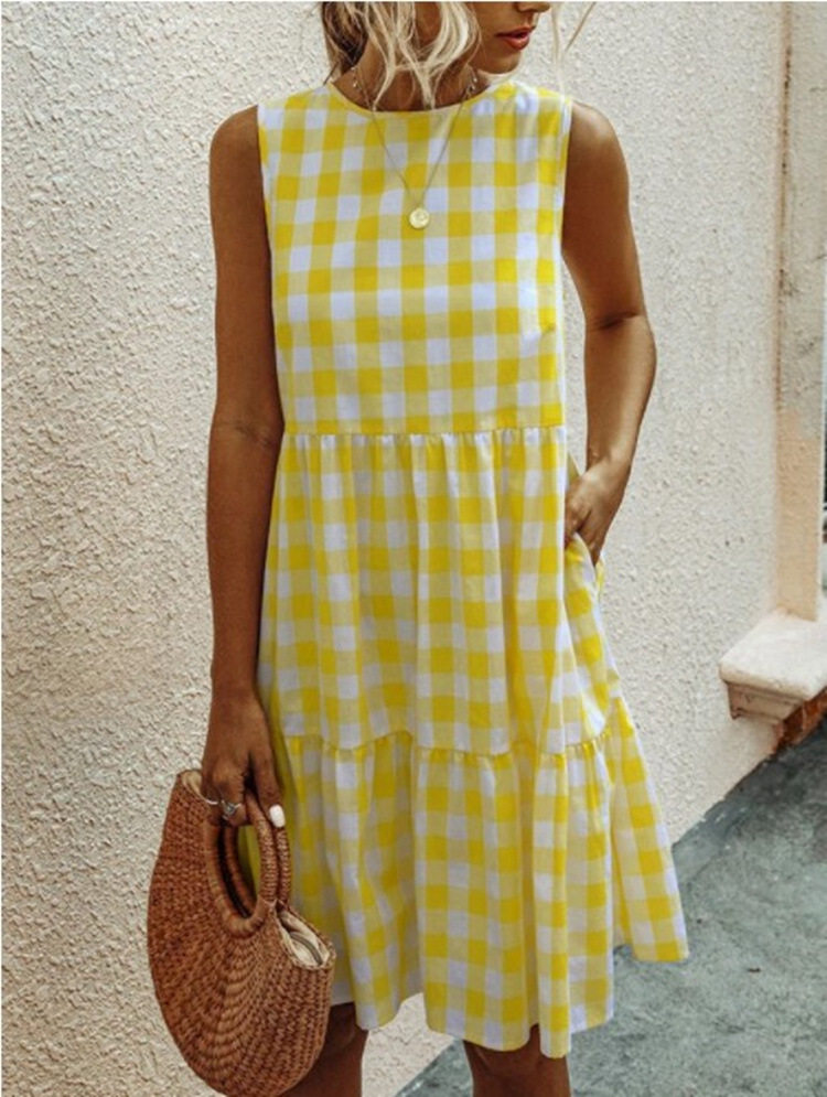 📚 Checkered Sleeveless Loose Swing Dress格纹无袖宽松大摆连衣裙