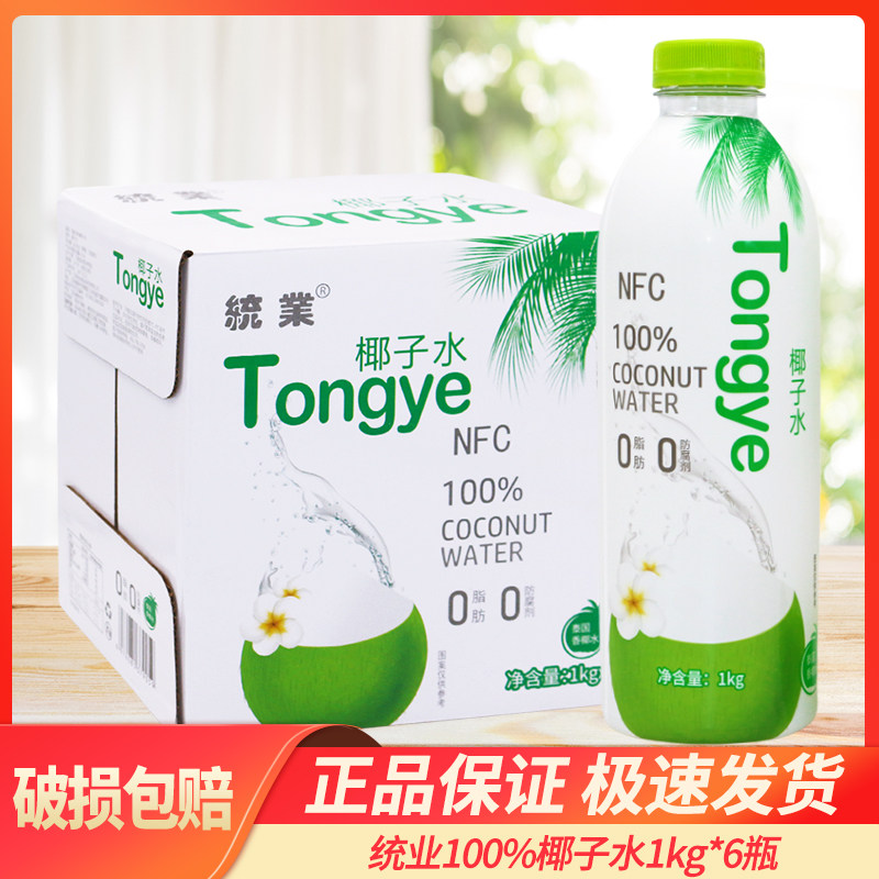 📚 统业100%椰子水1KG*6瓶整箱装椰汁果汁饮料椰子水批特价