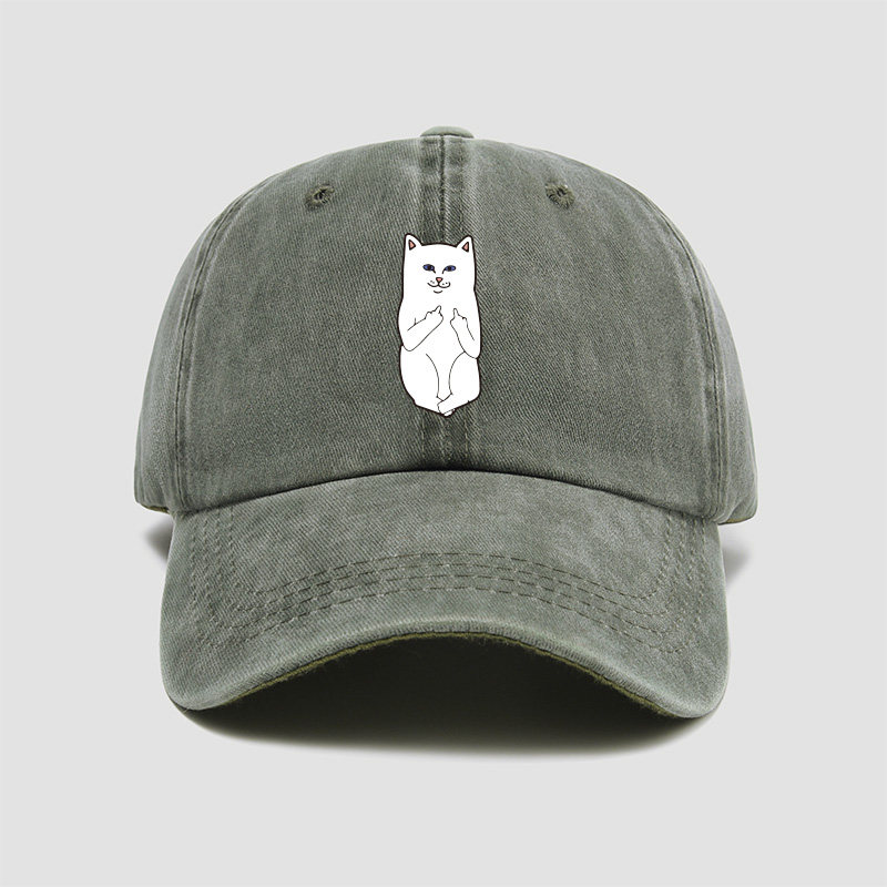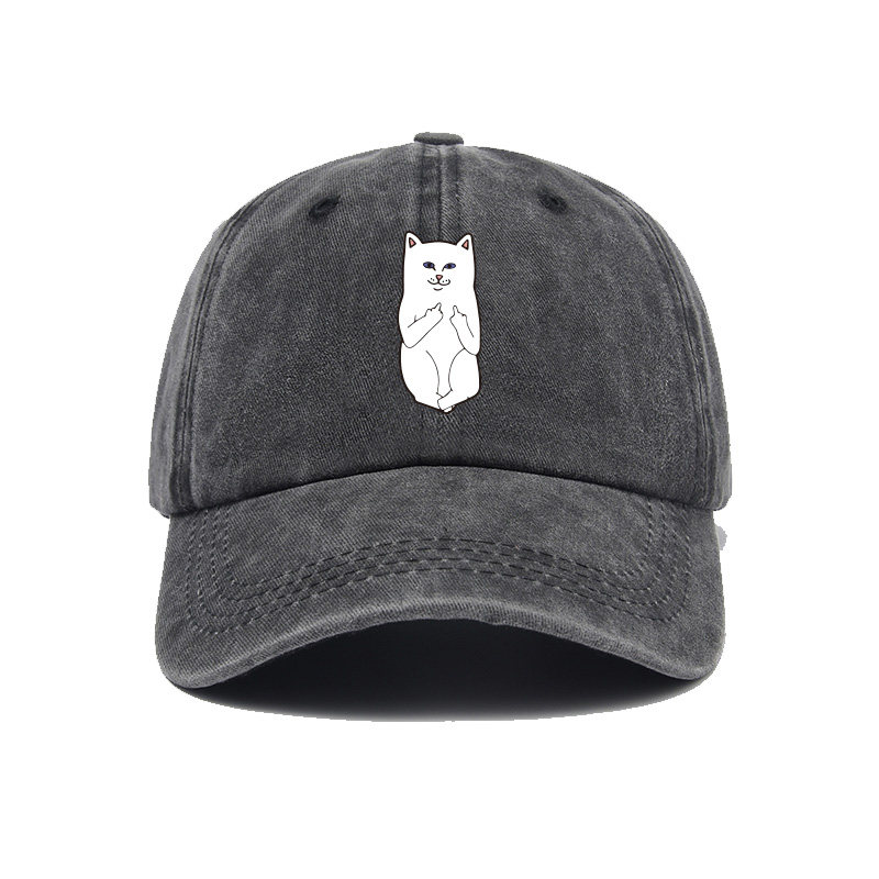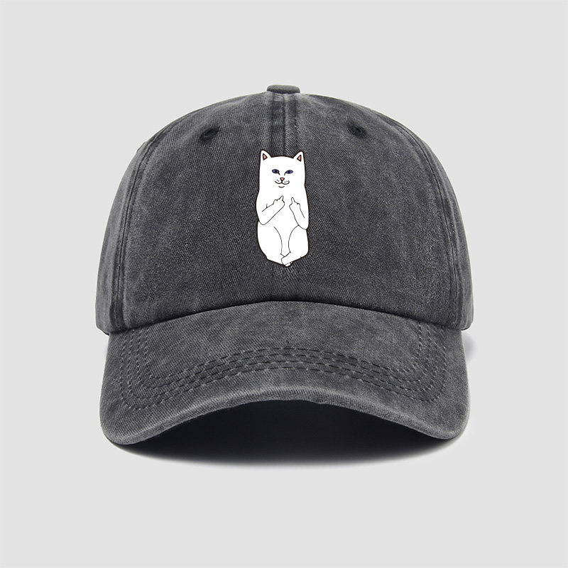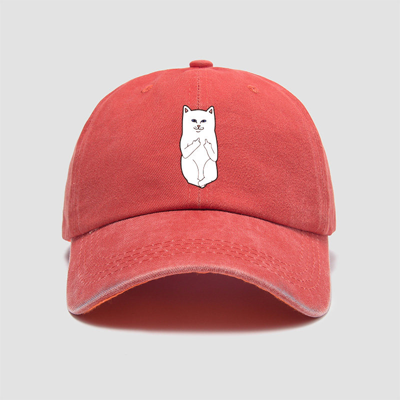 📚 贱猫竖中指帽子棒球帽男女小清新鸭舌帽遮阳帽户外防晒休闲运动