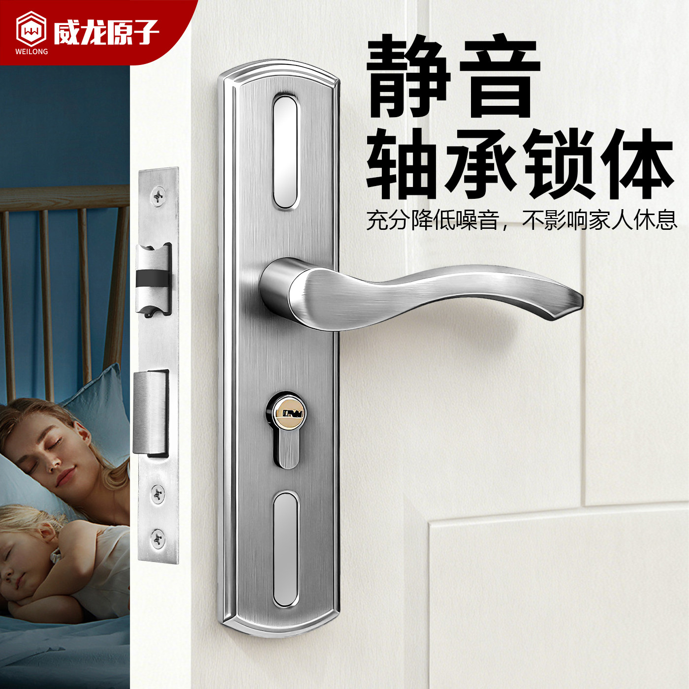 📚 卧室门锁室内家用通用型静音房间锁具木门套装免改孔老式门把手