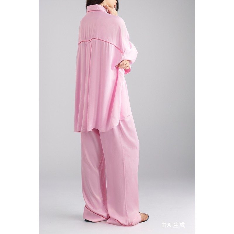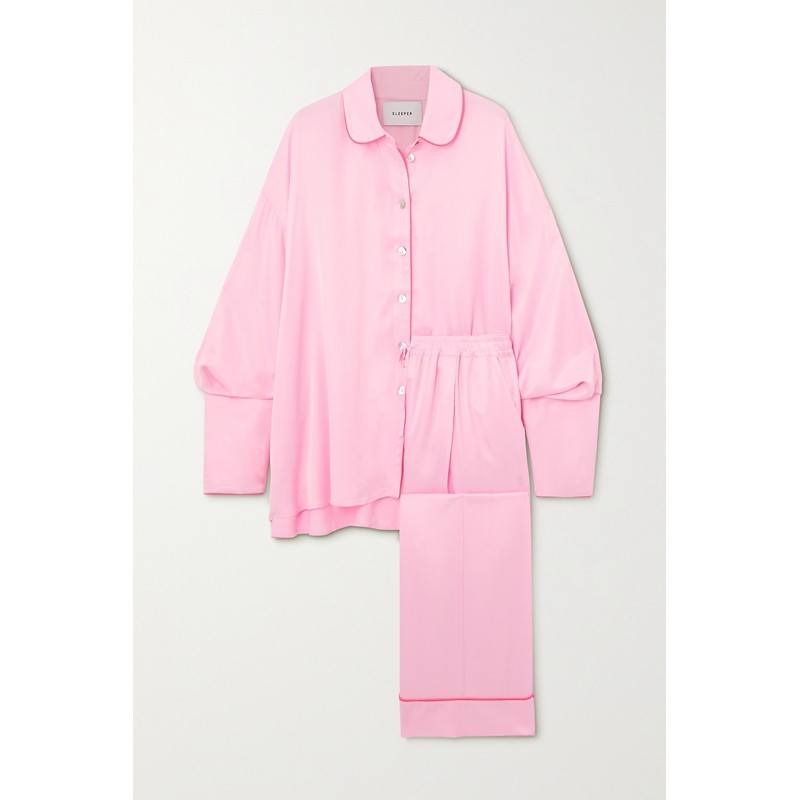 📚 【折扣】Sleeper 夏季女大廓形缎面粉红色睡衣套装