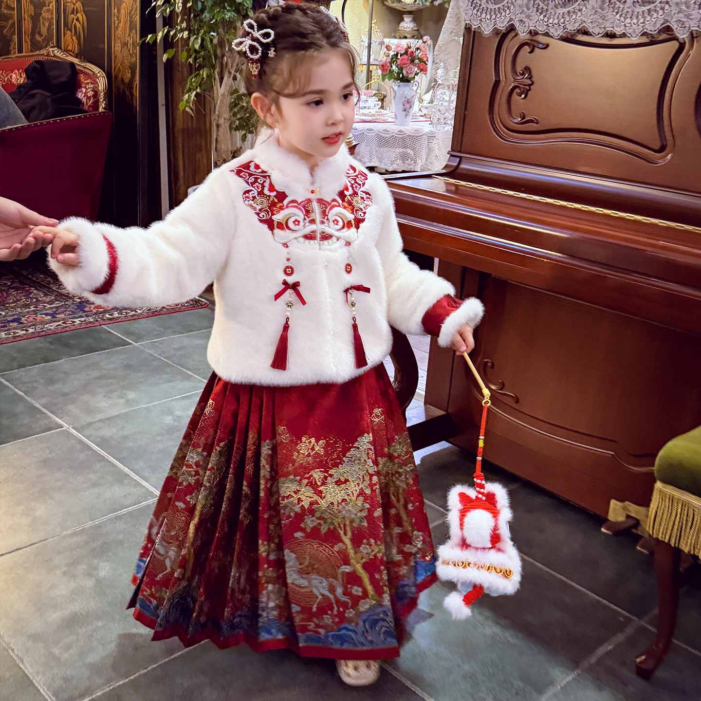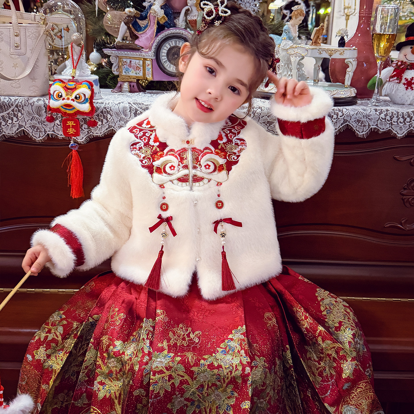 📚 米米哈罗女童仿皮草女孩加厚国风外套冬装2026新款儿童马面裙套装