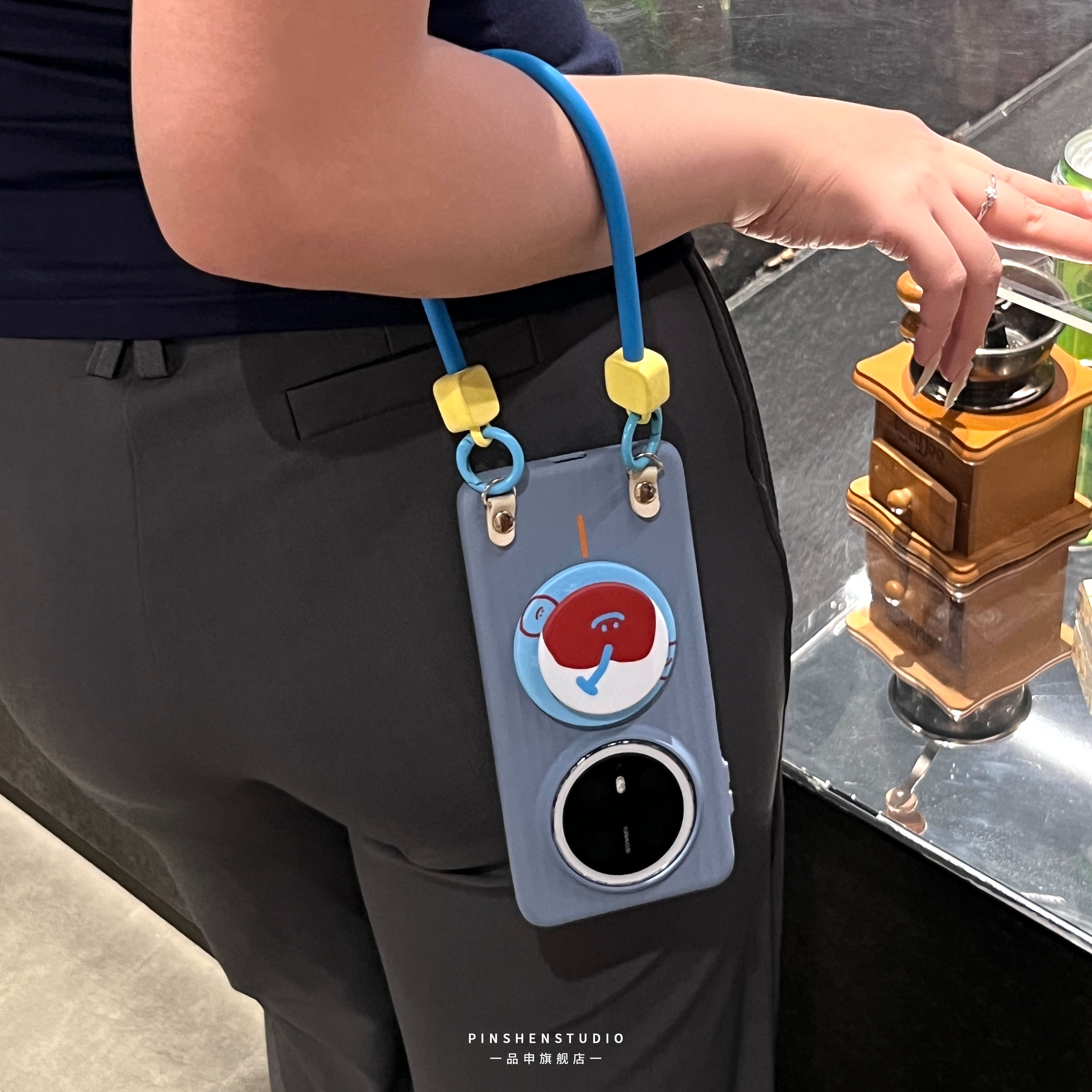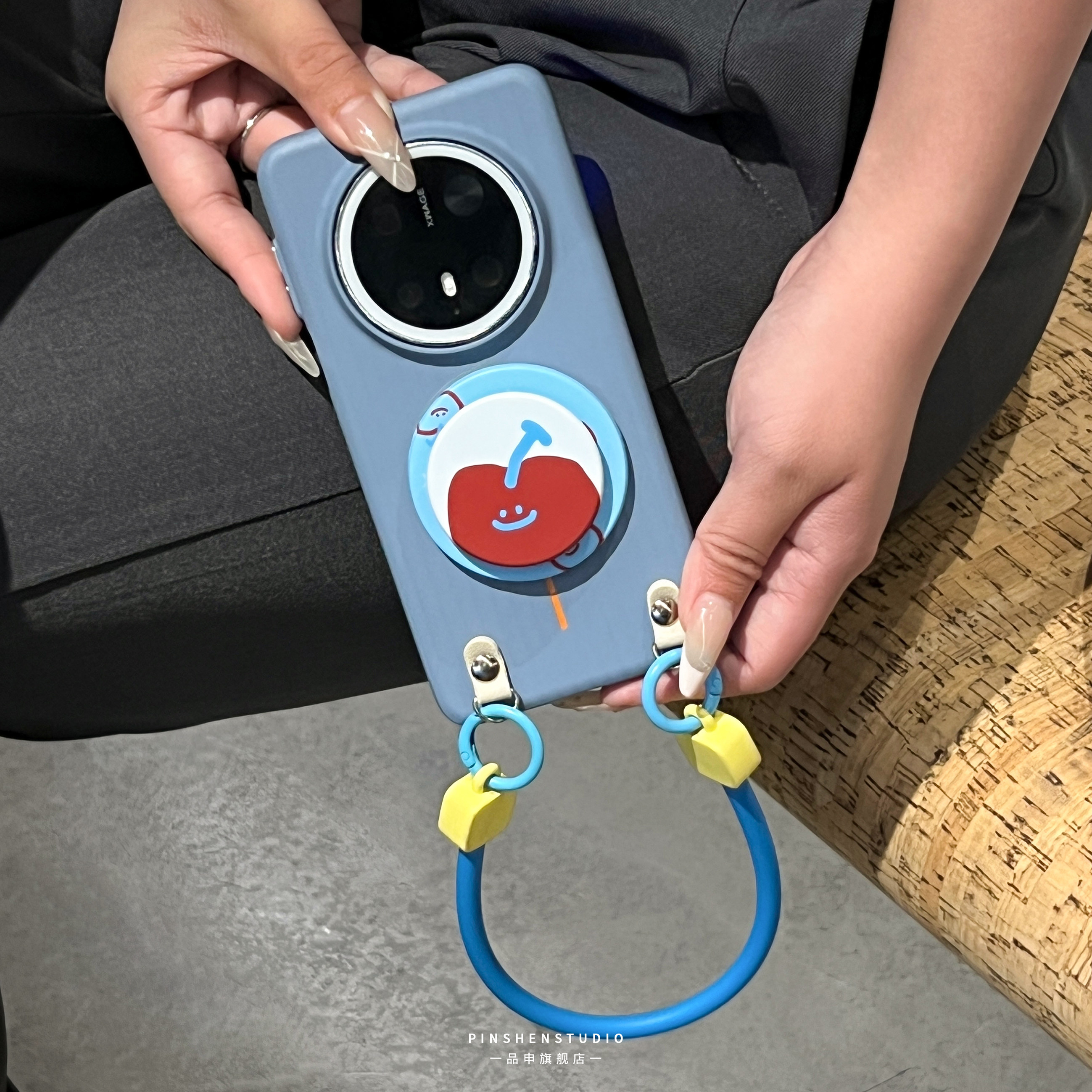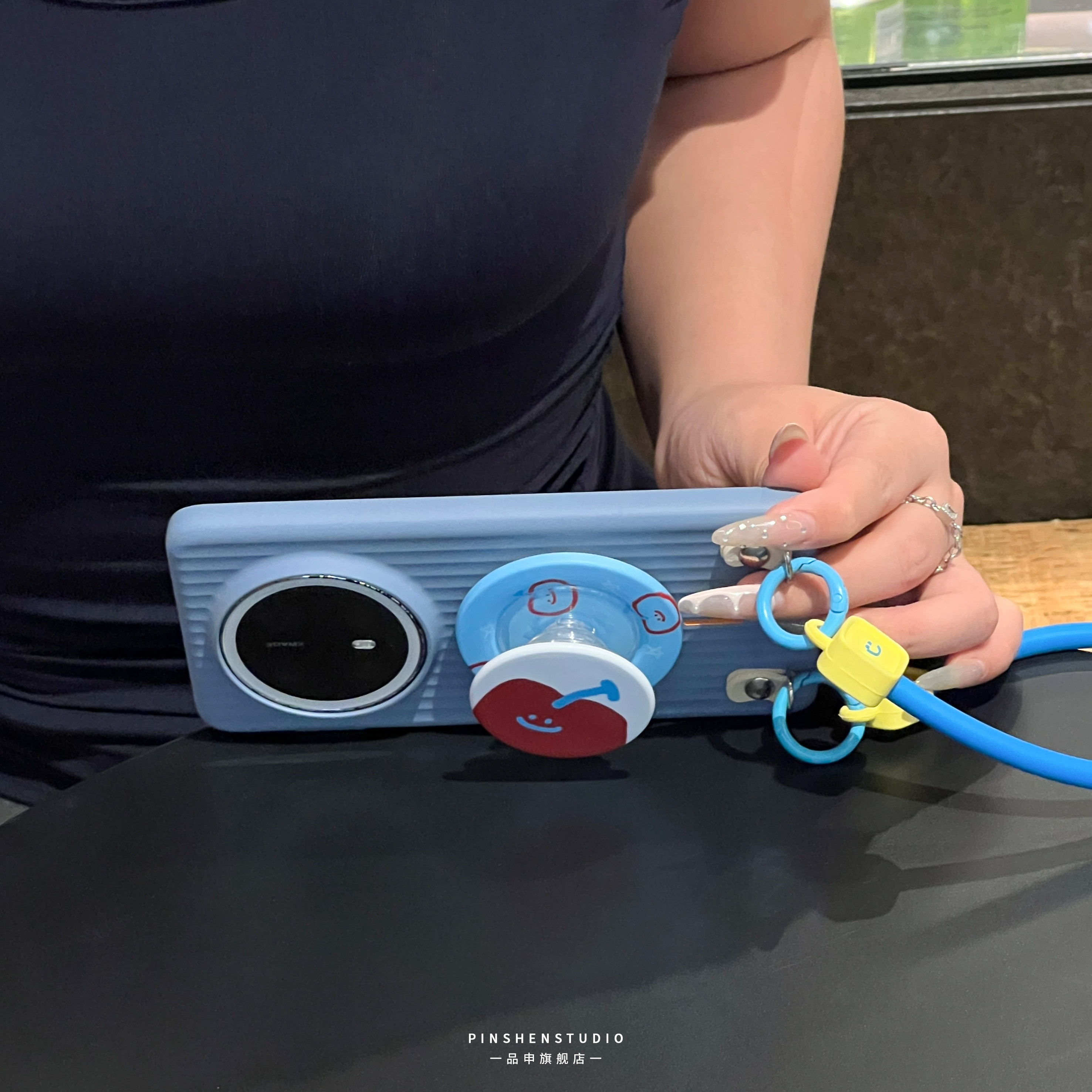 📚 品申原创pc轻薄湖蓝竖纹趣味苹果磁吸支架硅胶手提适用华为mate80pro手机壳全包防摔高级感ins风苹果17保护套