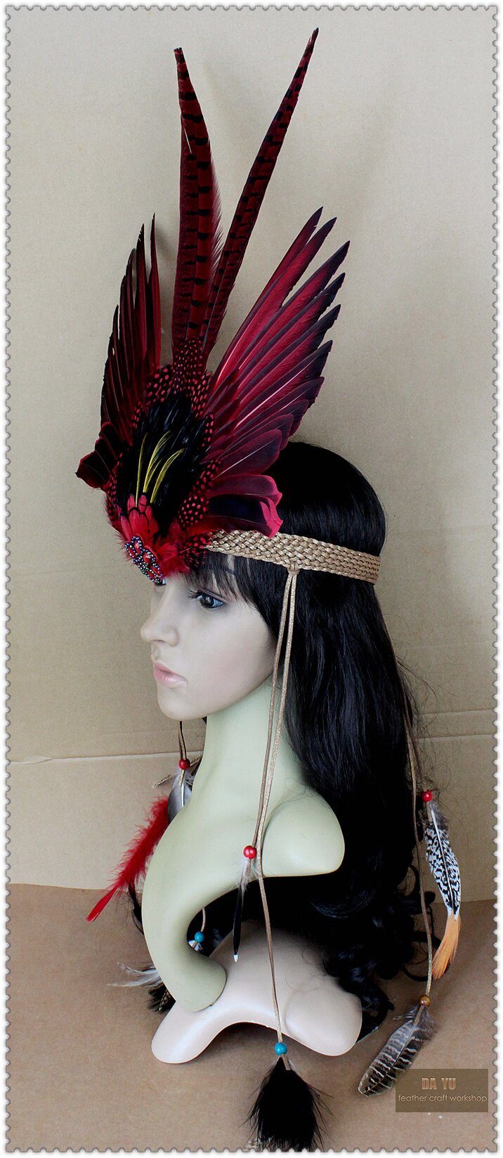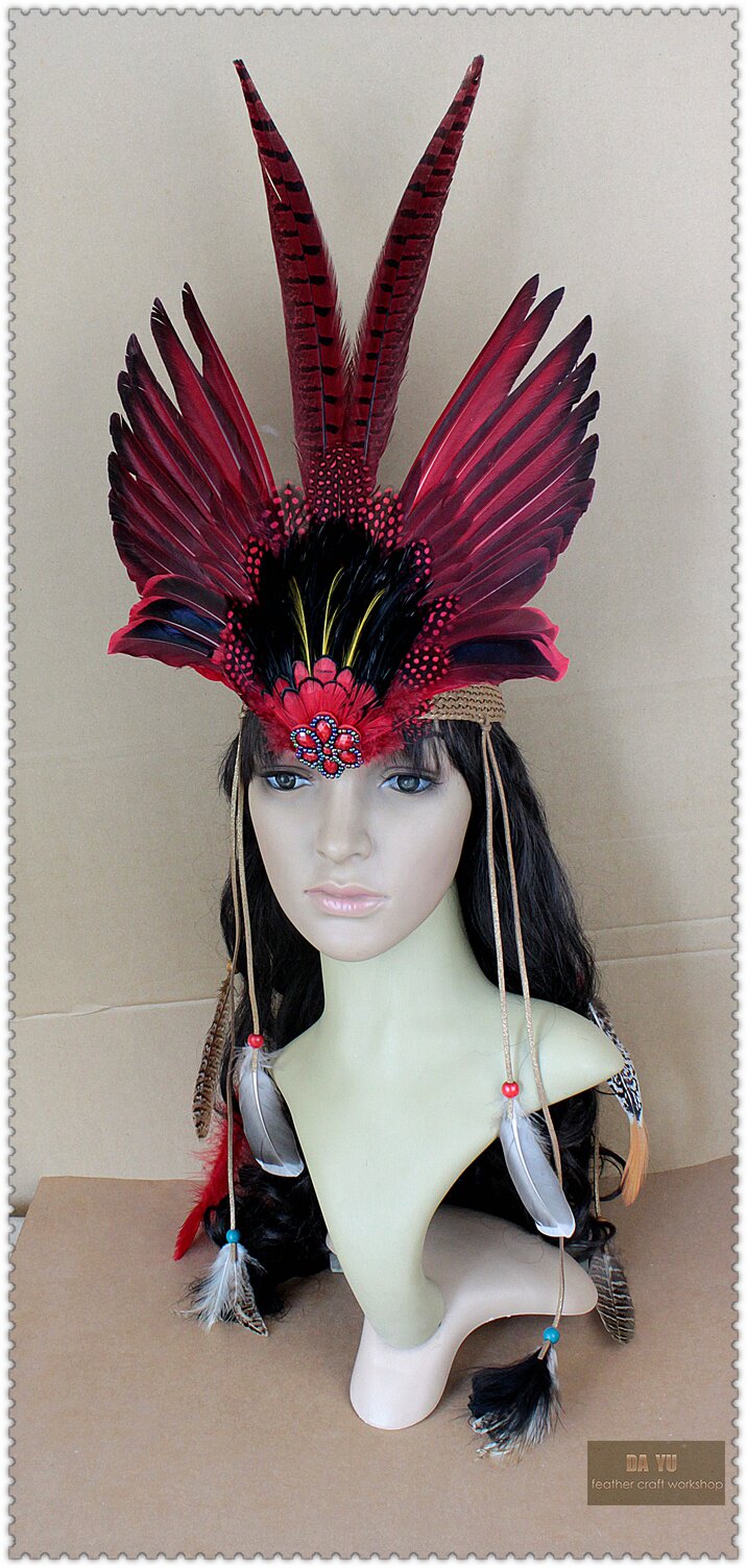 📚 DY原创夸张印第安头饰红色鹰头饰表演羽毛饰品酋长帽包邮