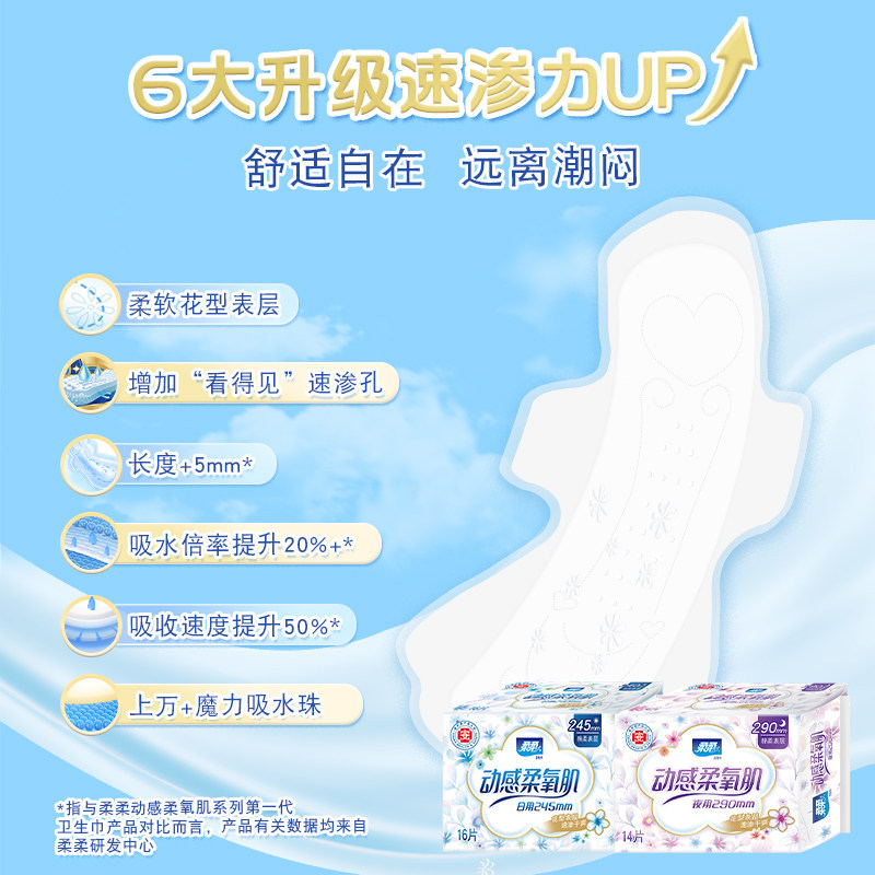📚 柔柔柔氧肌姨妈巾日夜用组合迷你巾护垫医护级安心裤加长卫生巾