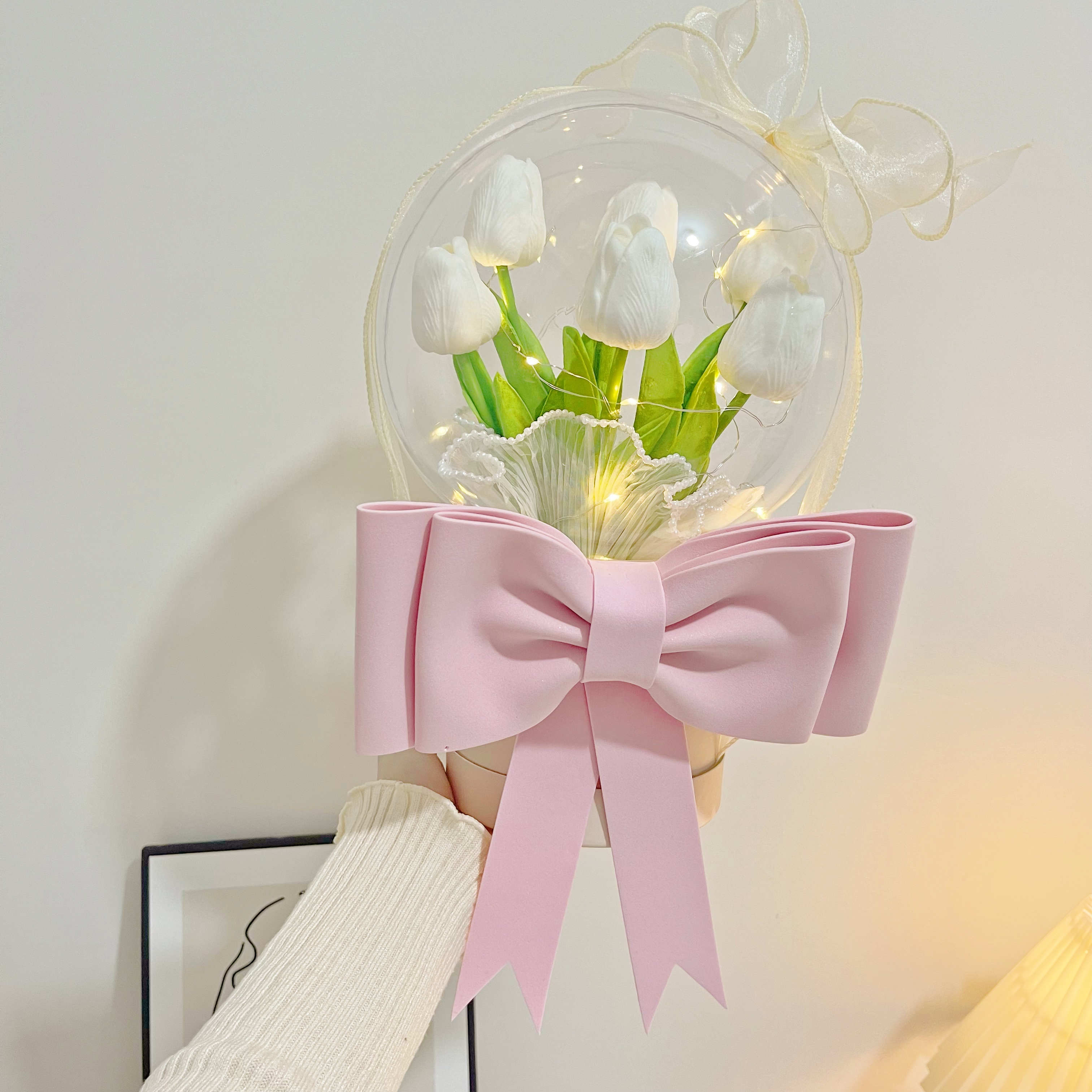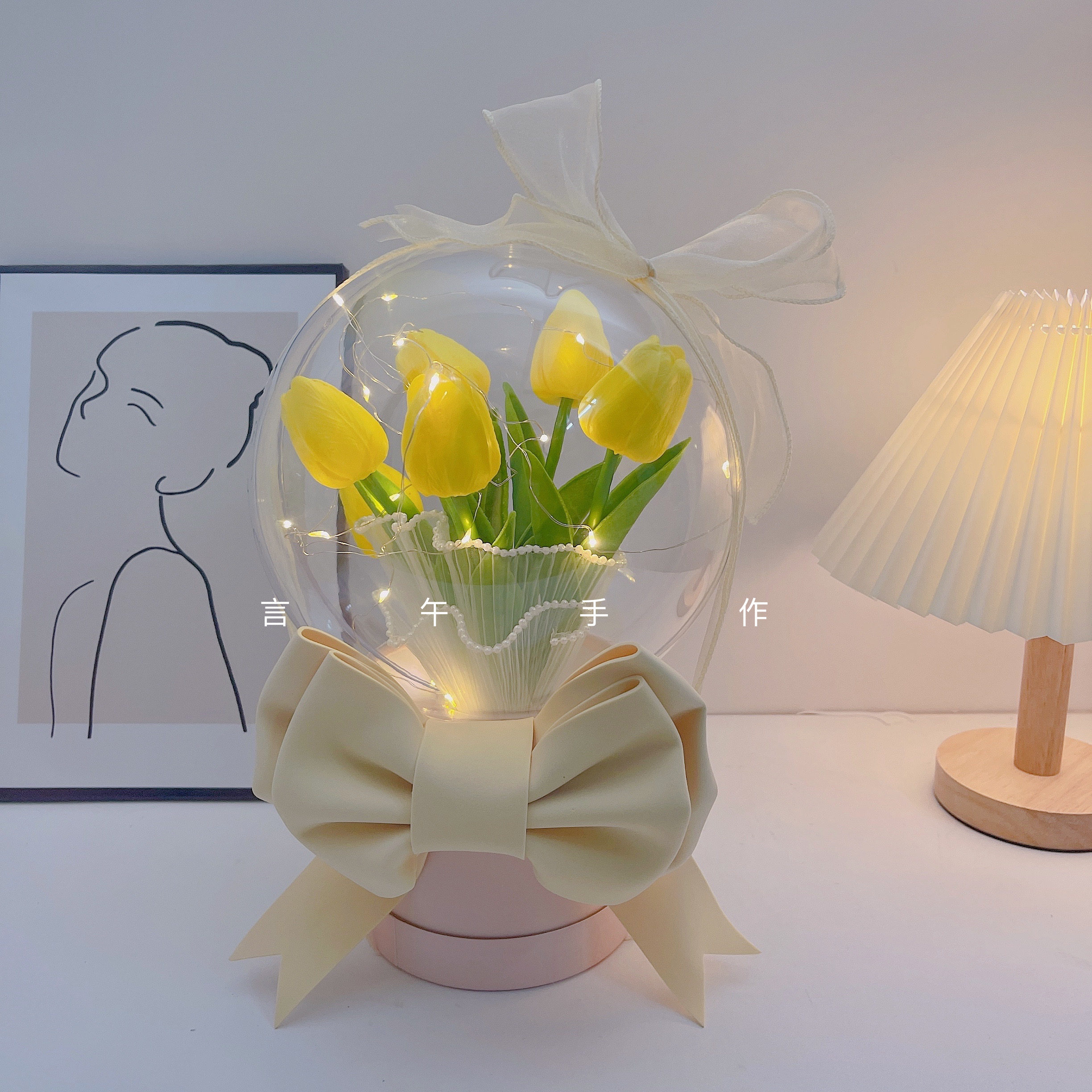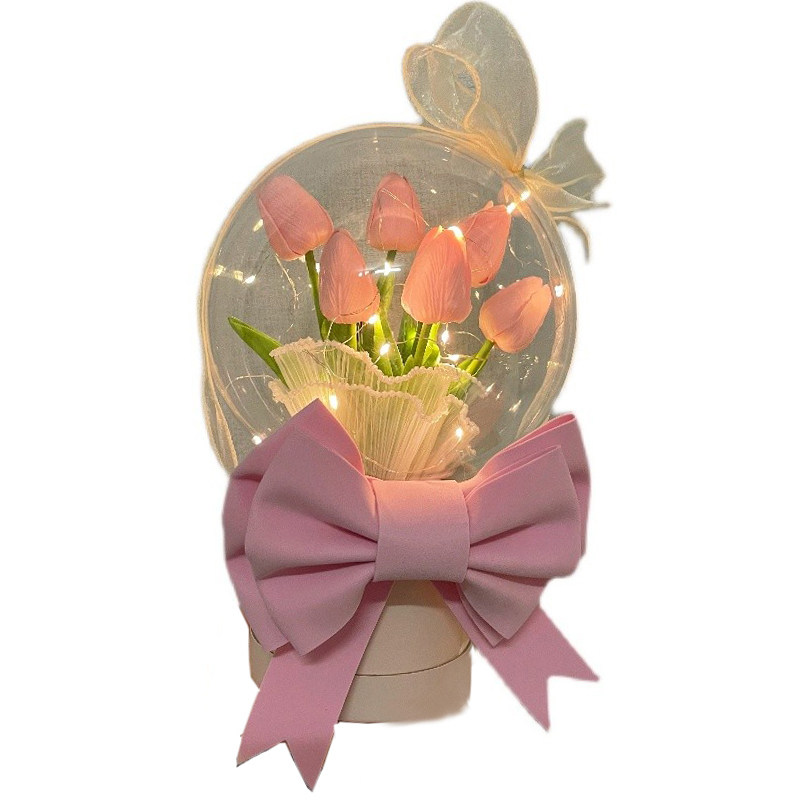 📚 「言午手作」郁金香粉色抱抱桶花束DIY材料包七夕节送闺蜜女朋友