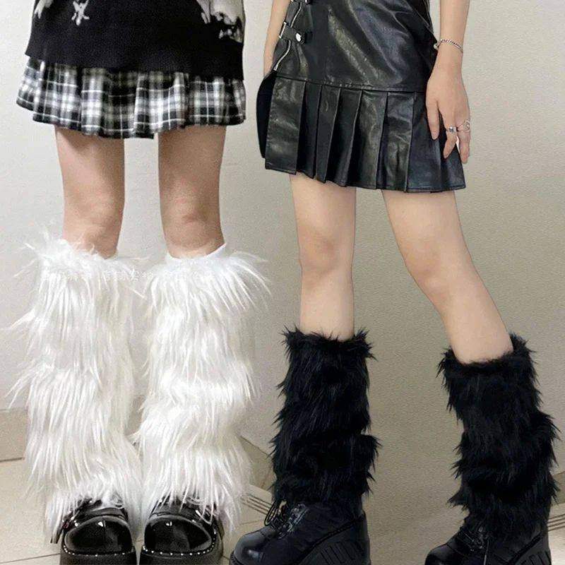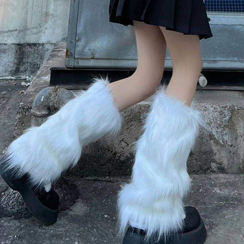 📚 Japanese White Faux Fur Leg Warmers Boot Covers Y2K Goth Sol