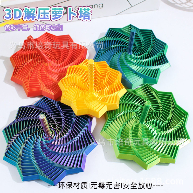📚 跨境3d打印带手柄萝卜塔幻觉解压玩具螺旋塔烦躁之星解压神器