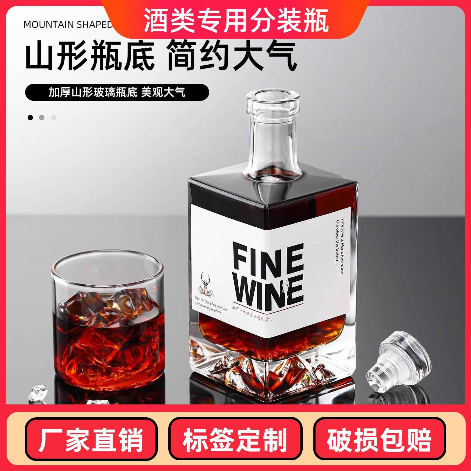 📚 高档玻璃酒瓶存酒专用一斤装玻璃空酒瓶密封瓶装酒加厚地牌