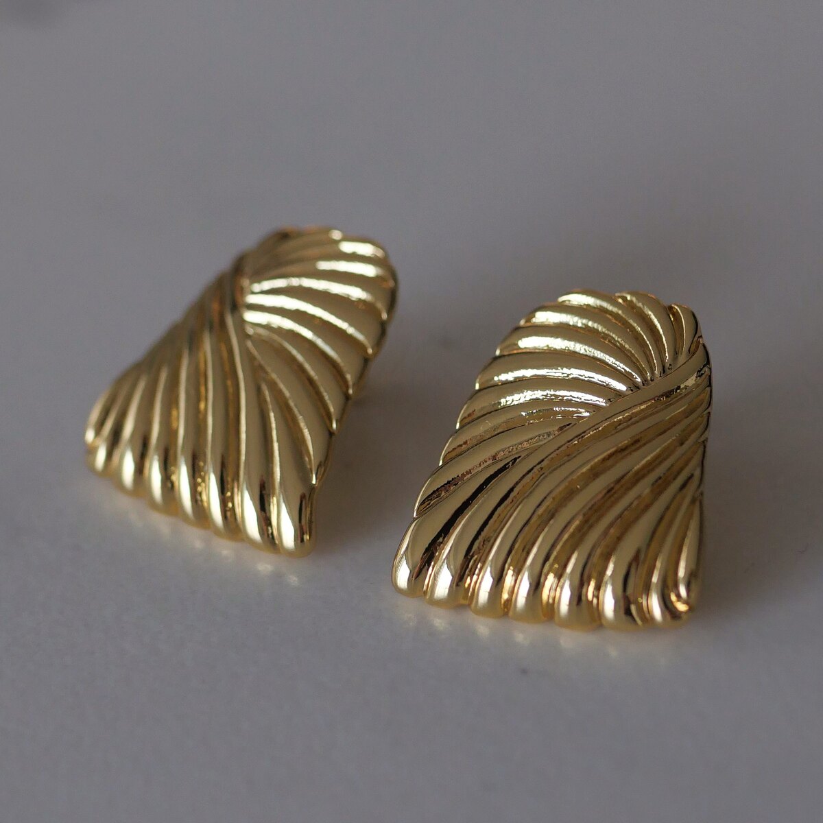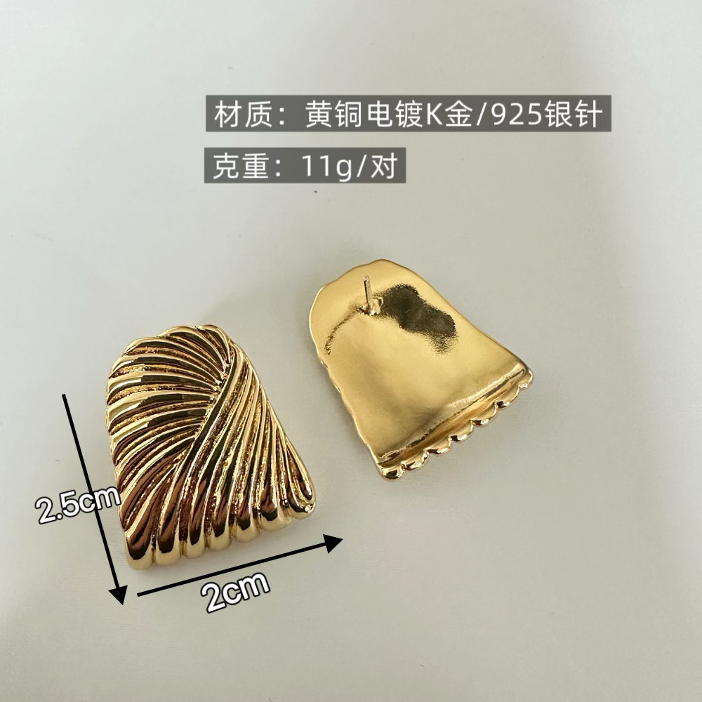 📚 方菱脸耳饰刘雯同款哑光金黄铜水波纹耳钉小众时尚配饰复古耳环女