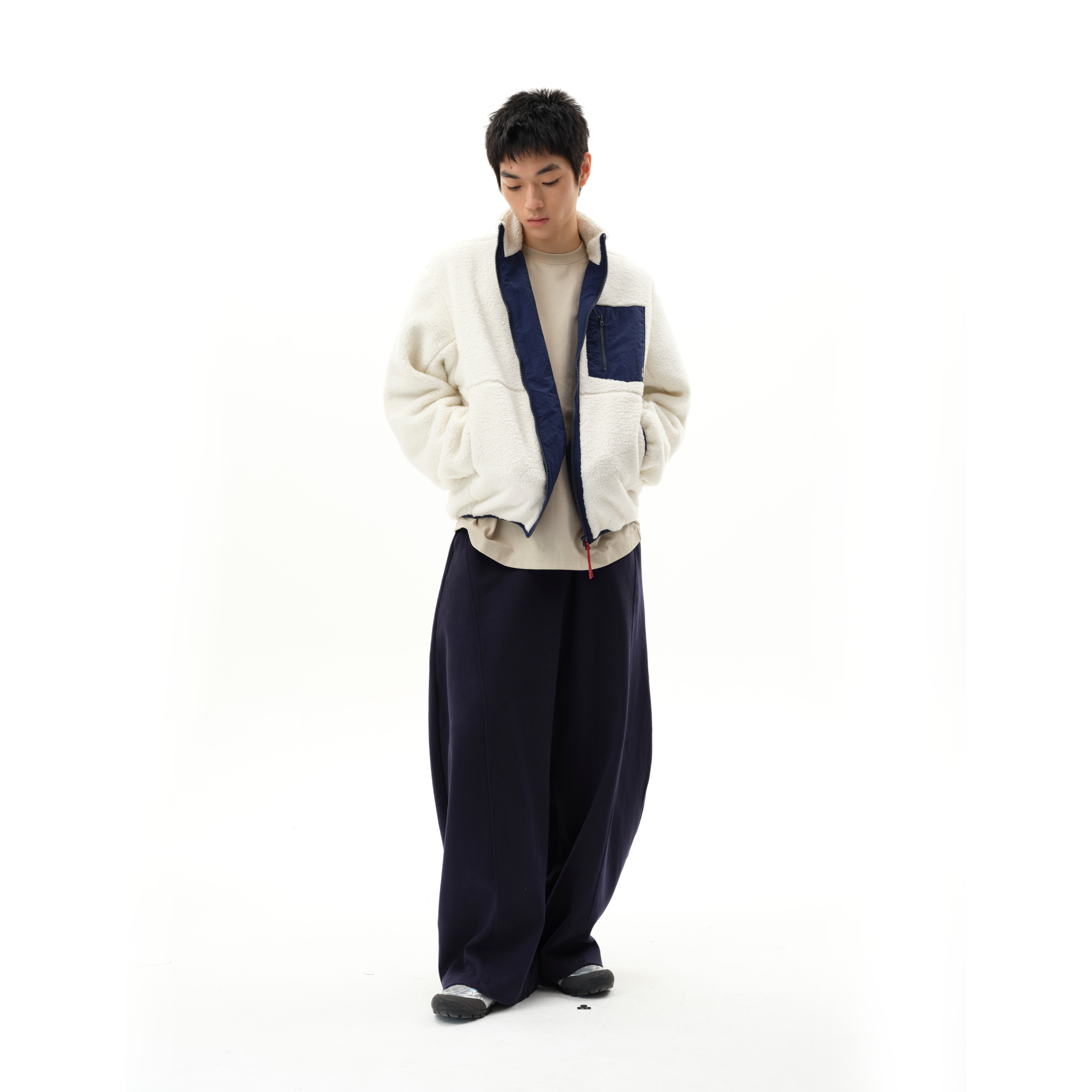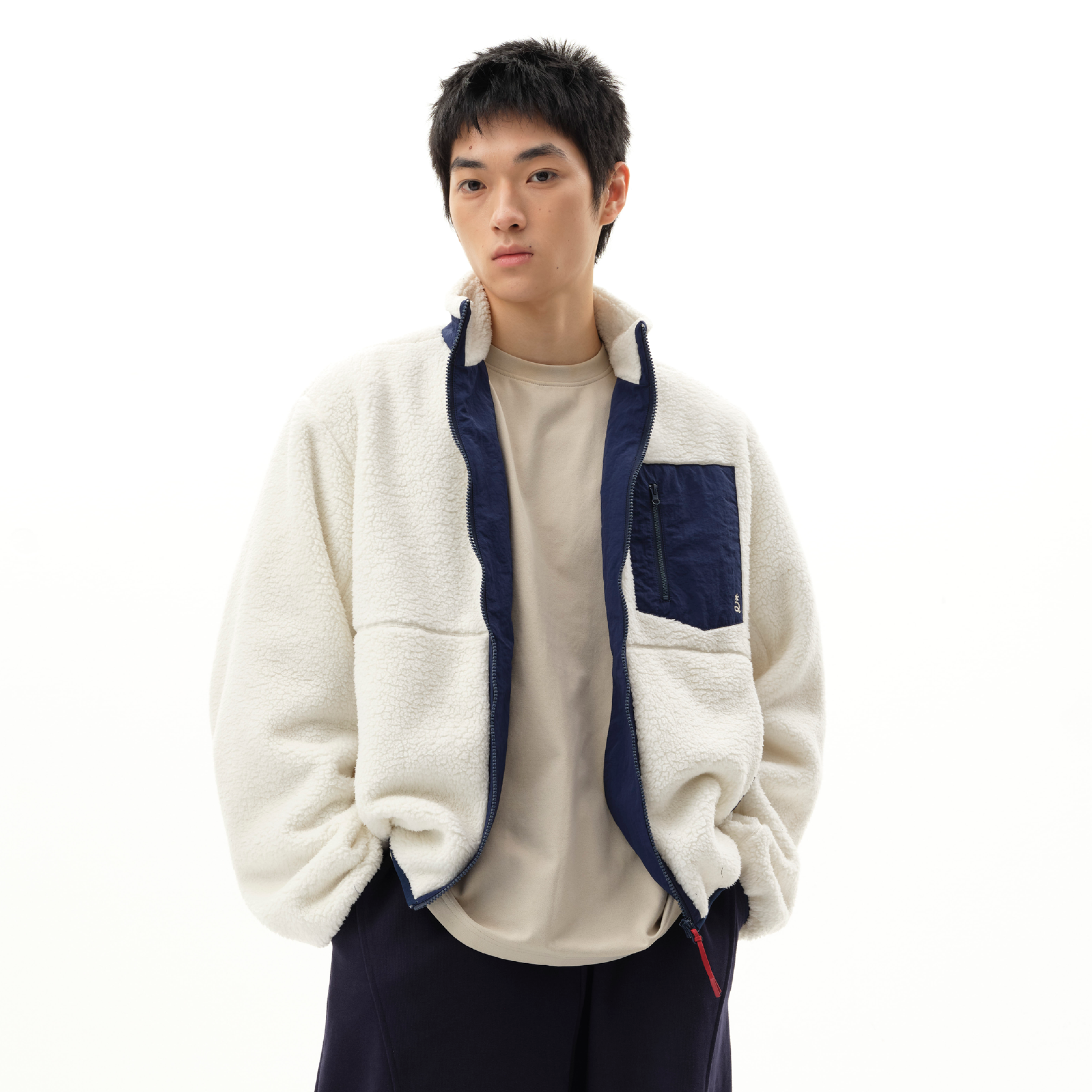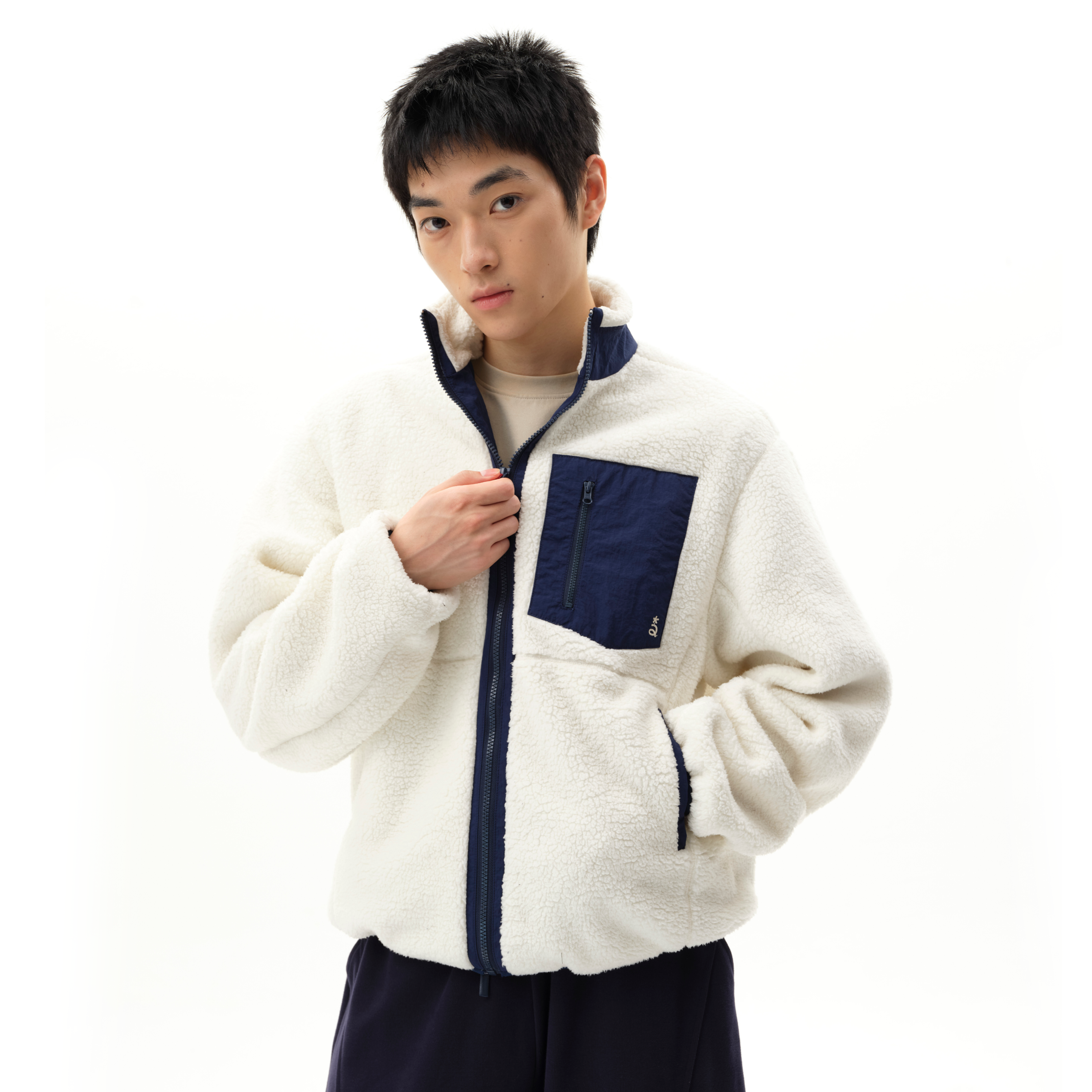 📚 roaringwild a arch 咆哮野兽 白色立领摇粒绒拉链美式夹克外套男
