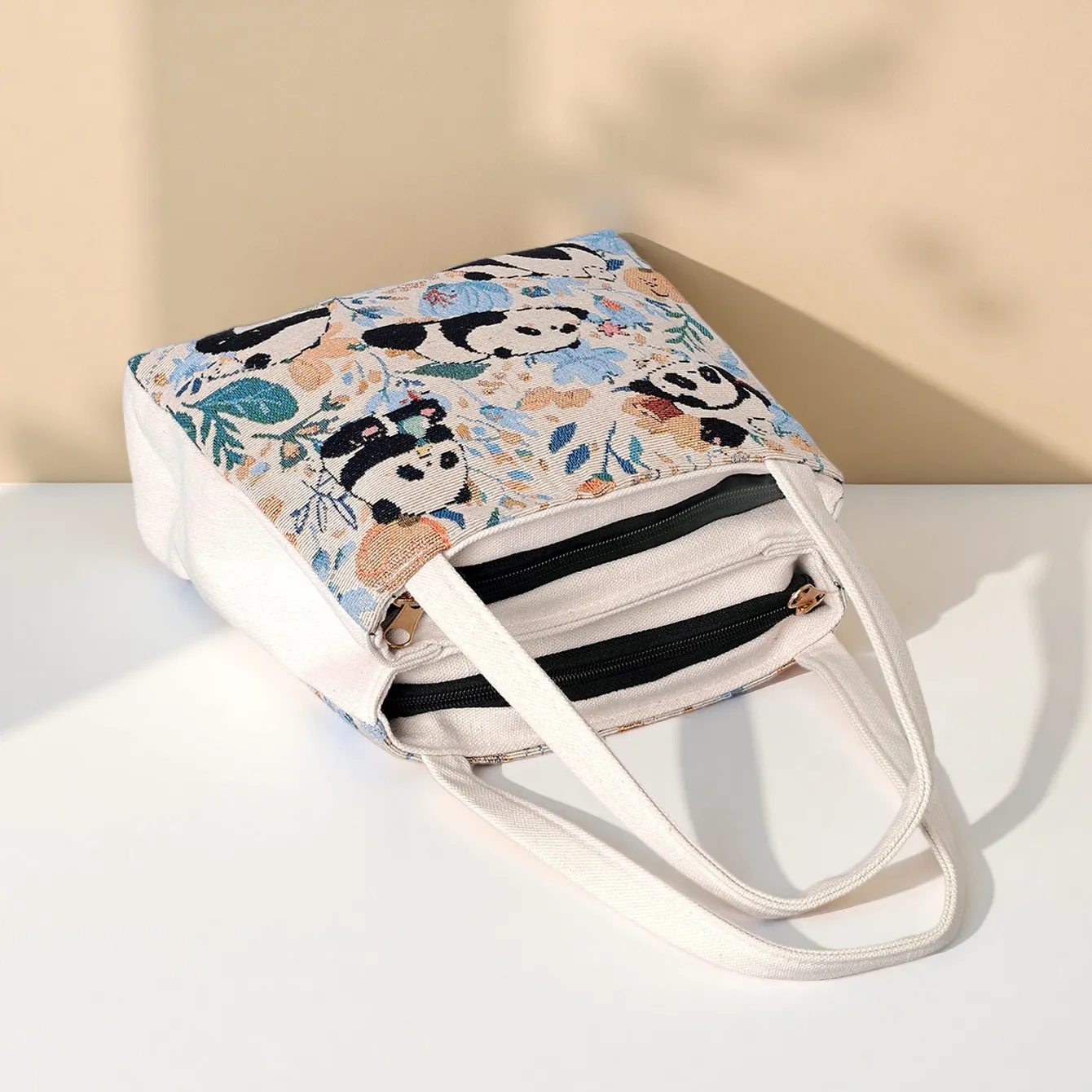 📚 民族风休闲帆布手提包小拎包文艺大容量手提小方包上班双层手提袋