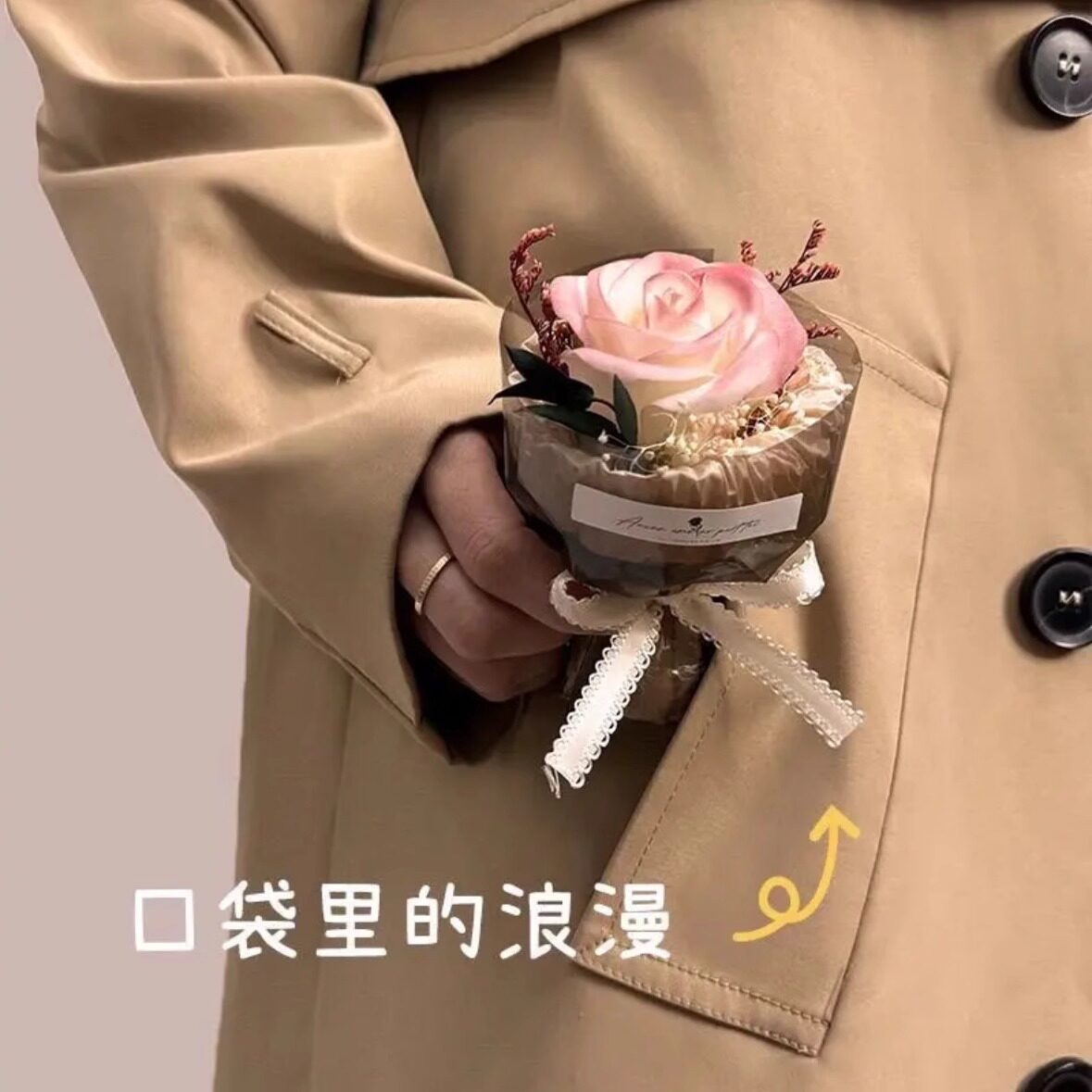 📚 迷你口袋见面小花束七夕节玫瑰永生花仿真花伴手礼盒生日礼物装饰