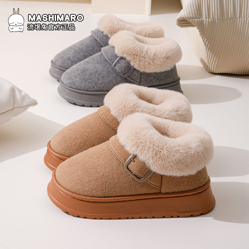 📚 流氓兔包跟棉拖鞋女冬季2025新款室内保暖加绒居家冬天棉鞋男外穿