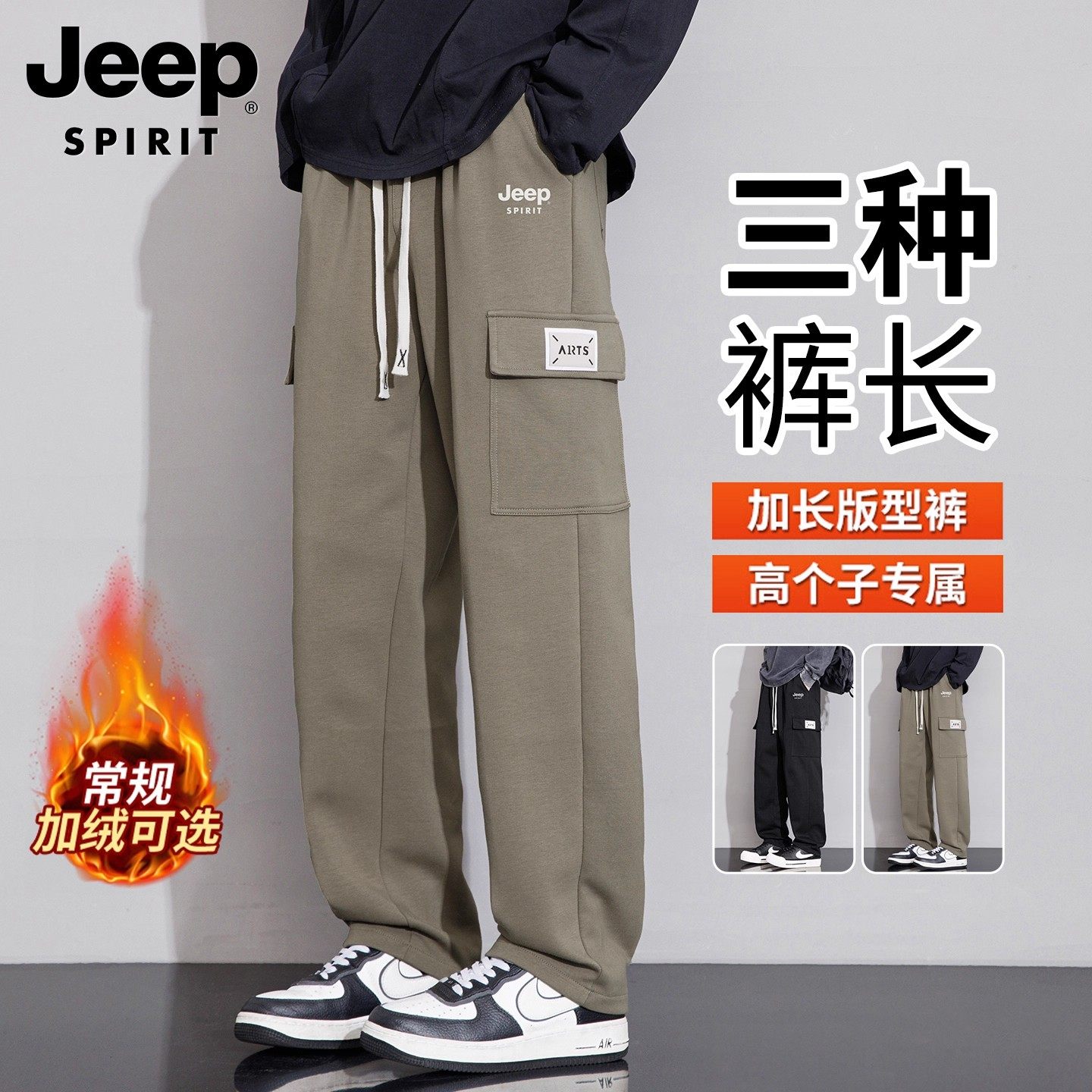 📚 JEEP SPIRIT秋冬季裤子加长款高个子男工装卫裤休闲加绒加厚宽松