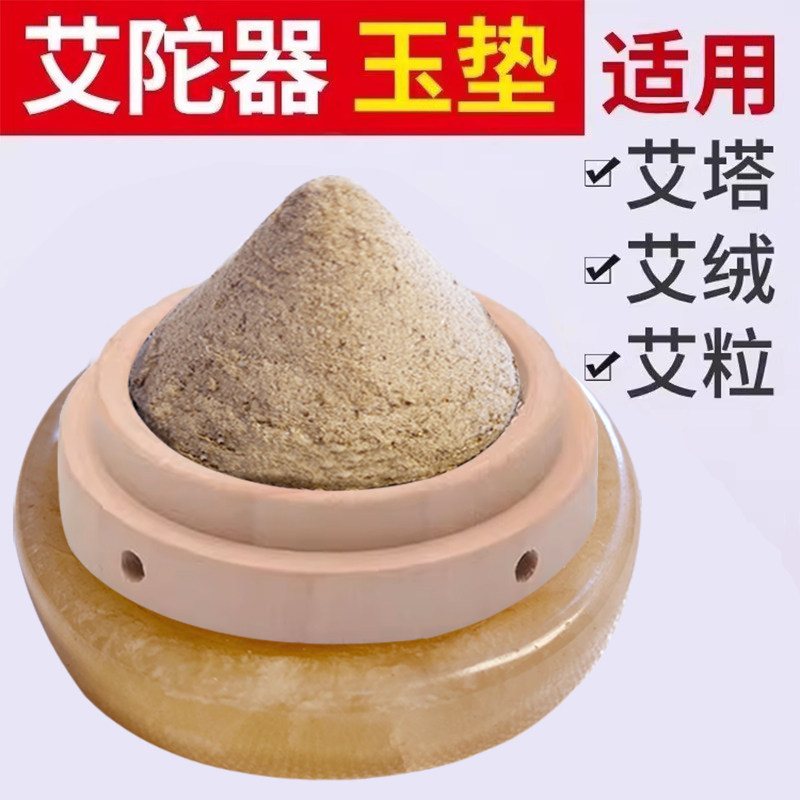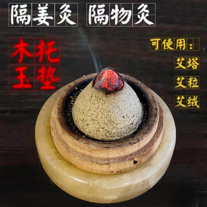 📚 艾塔艾灸肚脐隔姜盐灸玉石垫盒罐艾坨木托艾绒柱灸器底座工具家用