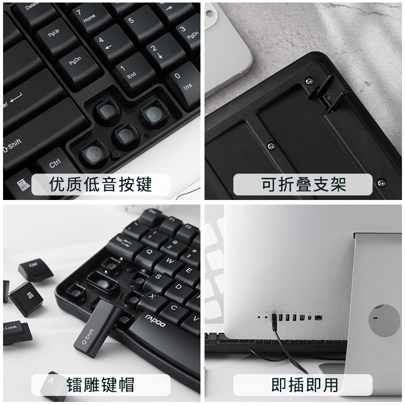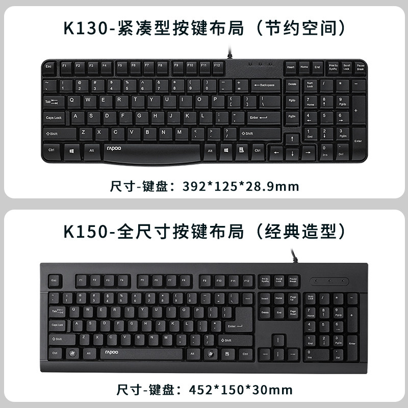 📚 雷柏K130 USB有线键盘防水笔记本台式机电脑静音办公家用键盘