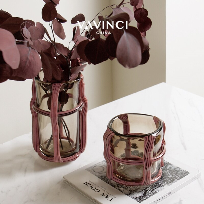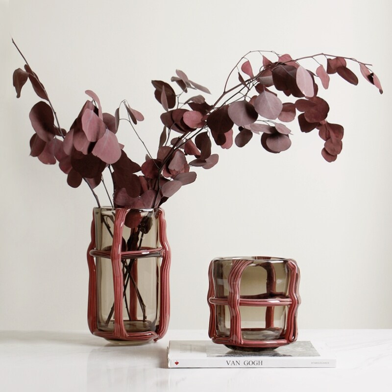 📚 轻奢高级侘寂风复古玻璃花器简约餐桌客厅样板间民宿玄关花瓶摆件
