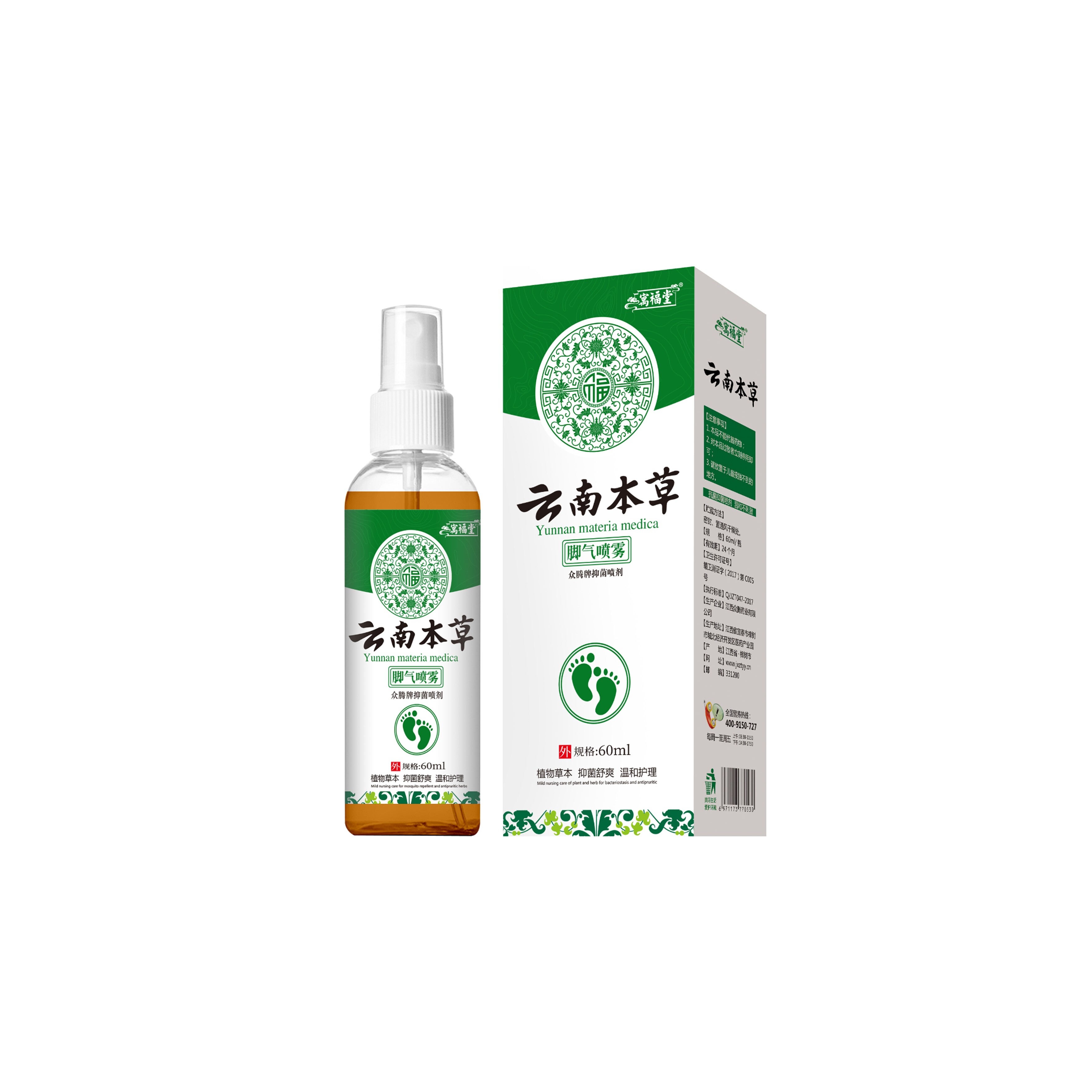 📚 云南本草寓福堂脚部喷剂脚臭气味脚痒脚丫护理汗脚抑菌液软膏喷雾