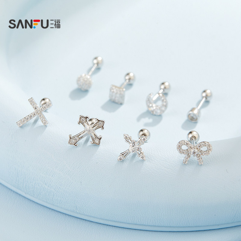 📚 三福925银螺丝闪闪耳钉单个 优雅气质首饰配饰耳环耳饰849482
