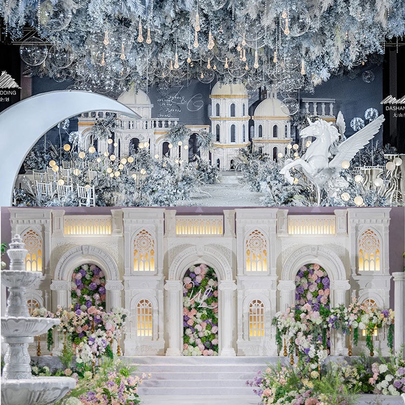 📚 泡沫雕塑婚礼舞台背景城堡罗马柱拱门龙柱定制商场假山宴会厅装饰