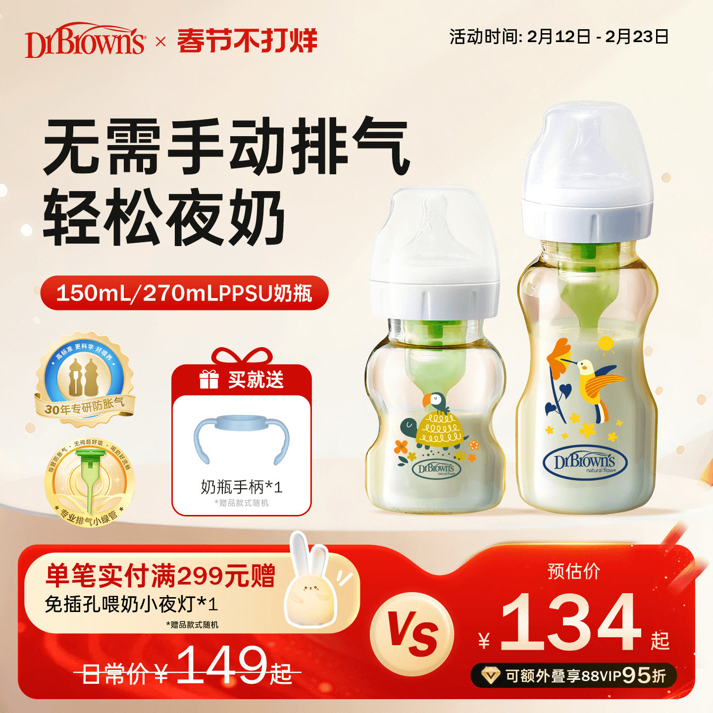 📚 布朗博士奶瓶新生儿奶嘴0-一岁以上宝宝防胀气奶瓶PPSU不易呛耐摔