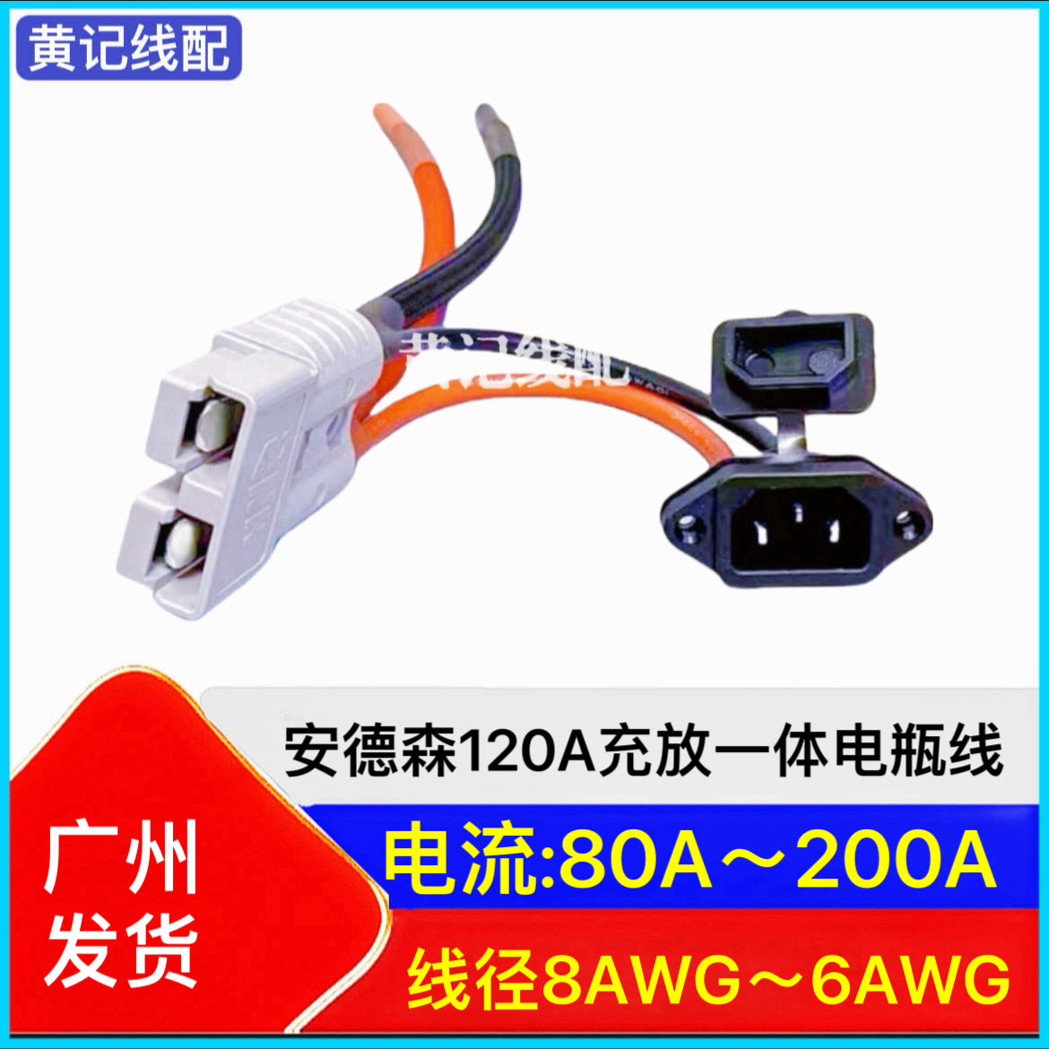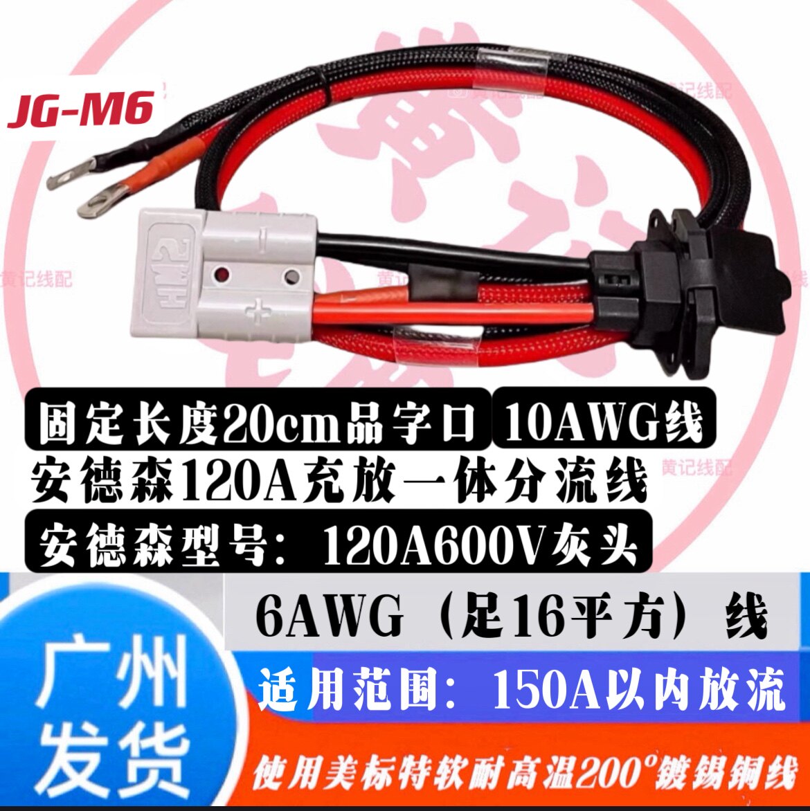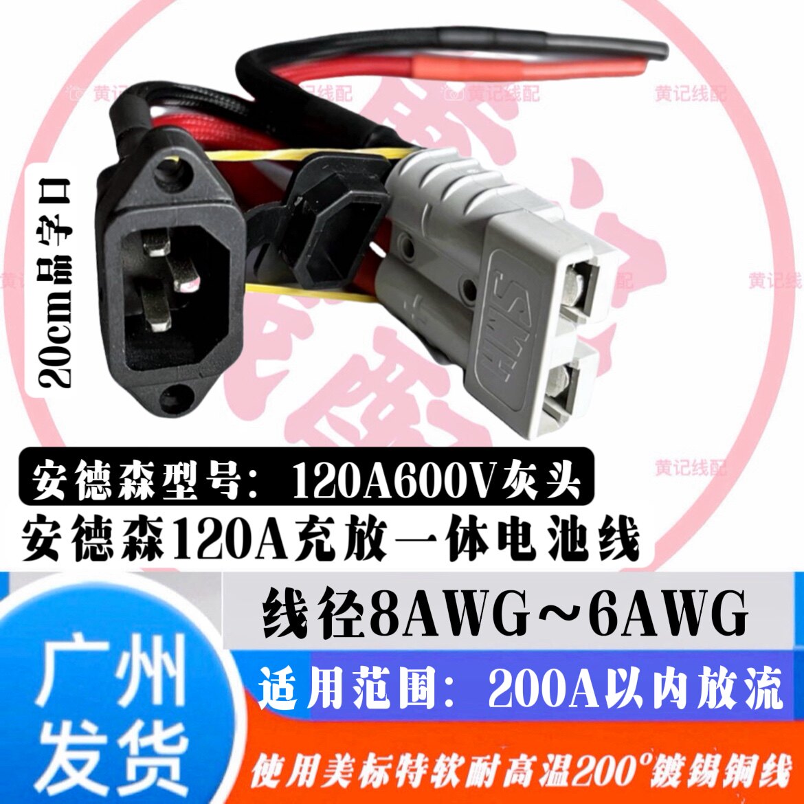 📚 安德森120A带线两三轮电动车锂电池电瓶大功率连接线房车叉车电源